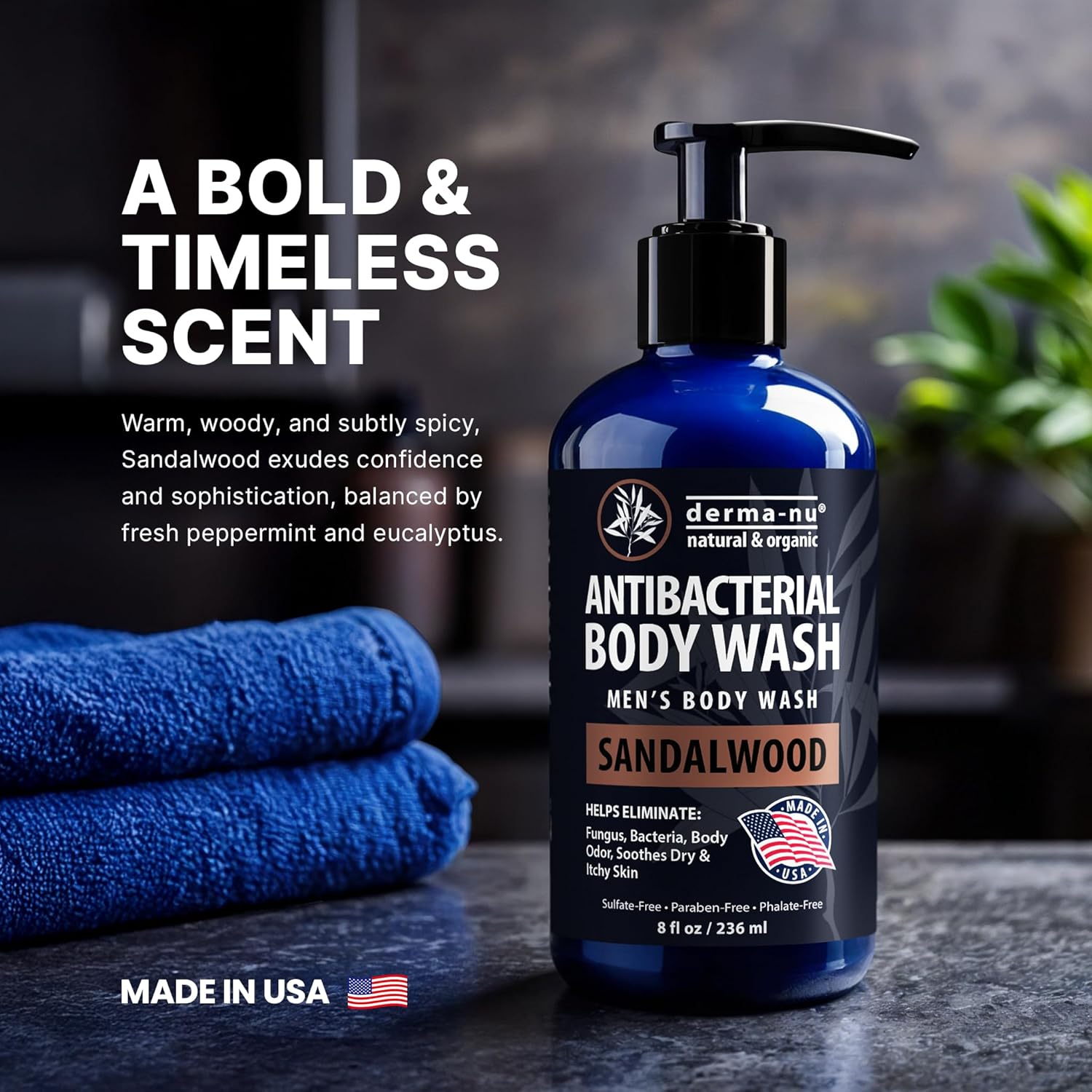 SOOTHES AND NOURISHES DRY, ITCHY SKIN - Derma-Nu Therapeutic Antibacterial Body Wash gently cleanses skin and provides soothing and nourishing relief from dry, itchy skin. This multi-action antibacterial soap helps calm and relieve jock itch, athletes foot, ringworm, toenail and nail fungus, body acne, and more.