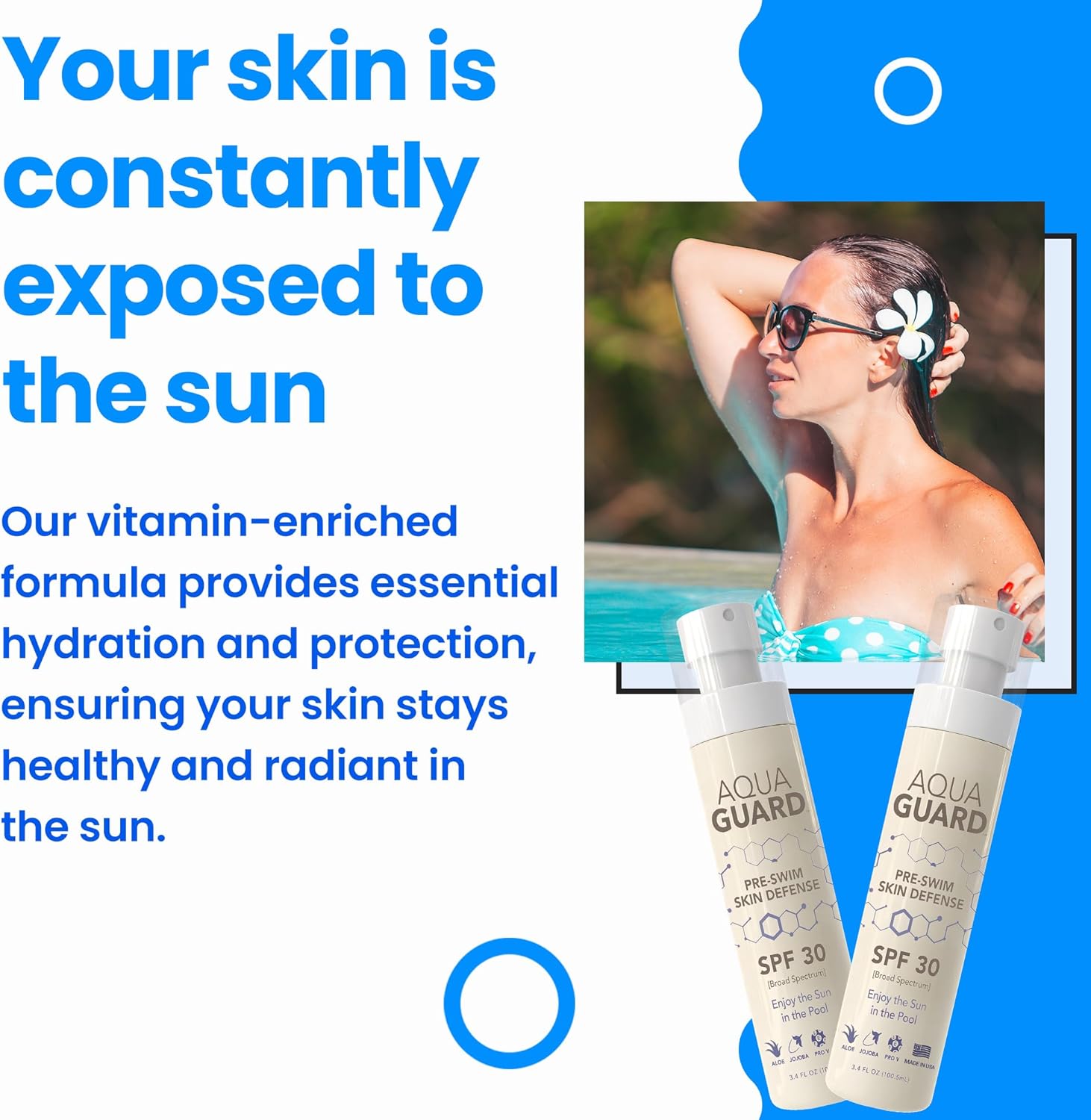 Apply 15 minutes before swimming to keep your skin glowing and hydrated while you enjoy the sun!
