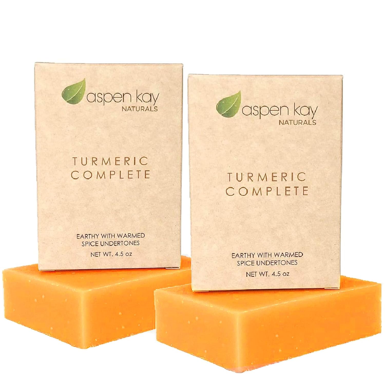 Aspen Kay Naturals Turmeric Soap for Face & Body - With Organic Shea Butter, Chamomile & Calendula - Gentle Turmeric Face Wash, All Skin Types, Made in USA 4.5 oz Bar(Turmeric,4.5 Ounce (Pack of 2))