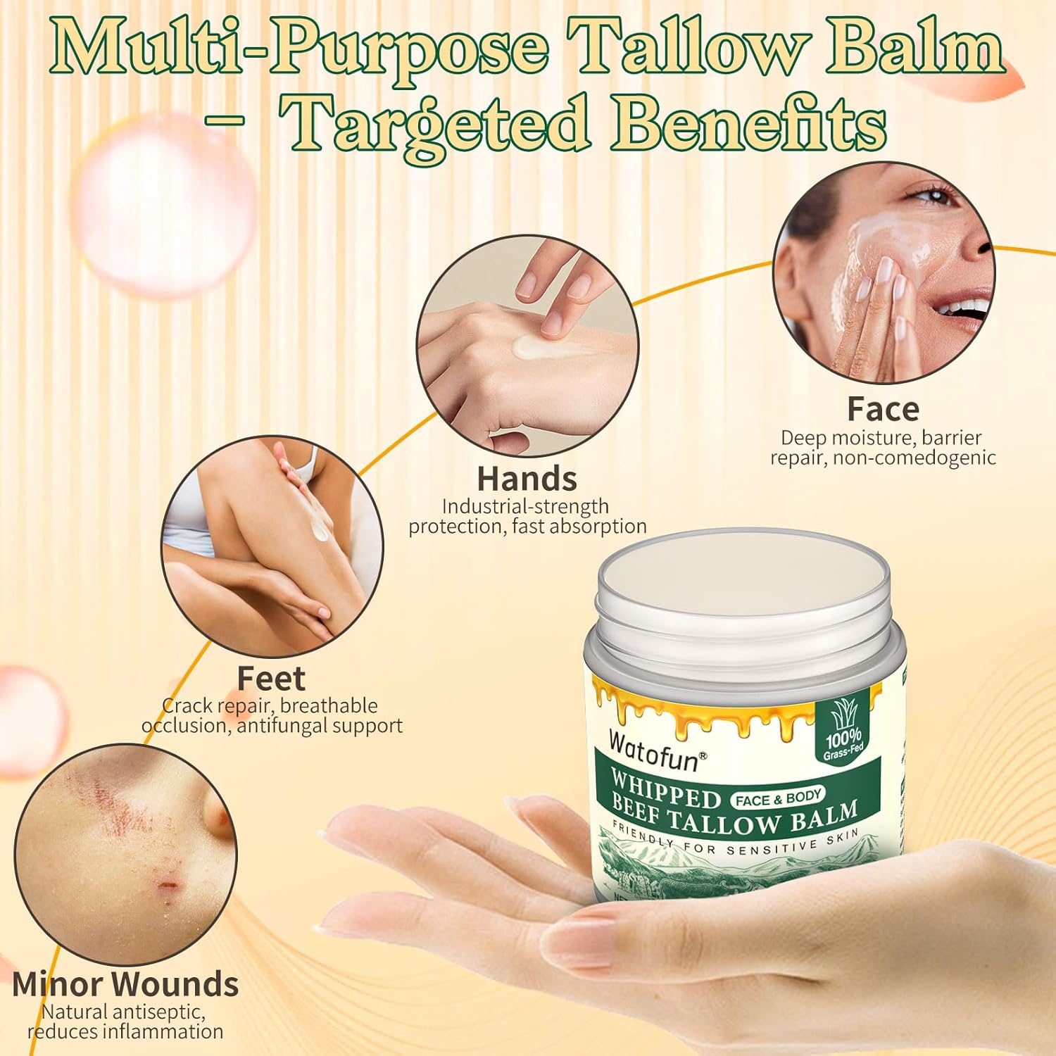 Ethical & Sustainable: Watofun beef tallow for skin is sourced from regenerative farms and bee-friendly harvests. We use plastic-free, zero-waste packaging in a carbon-neutral process—good for your skin and the planet