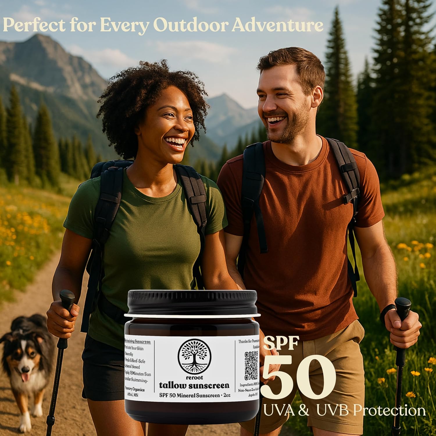 Beef Tallow Sunscreen - Non Toxic, All Natural, Non-Nano Zinc Oxide Cream - Tinted Mineral Sunscreen for Face - Reef Safe SPF 50 Sun Protection for Men Women and Children (2oz, Unscented)(Unscented,2 Ounce)