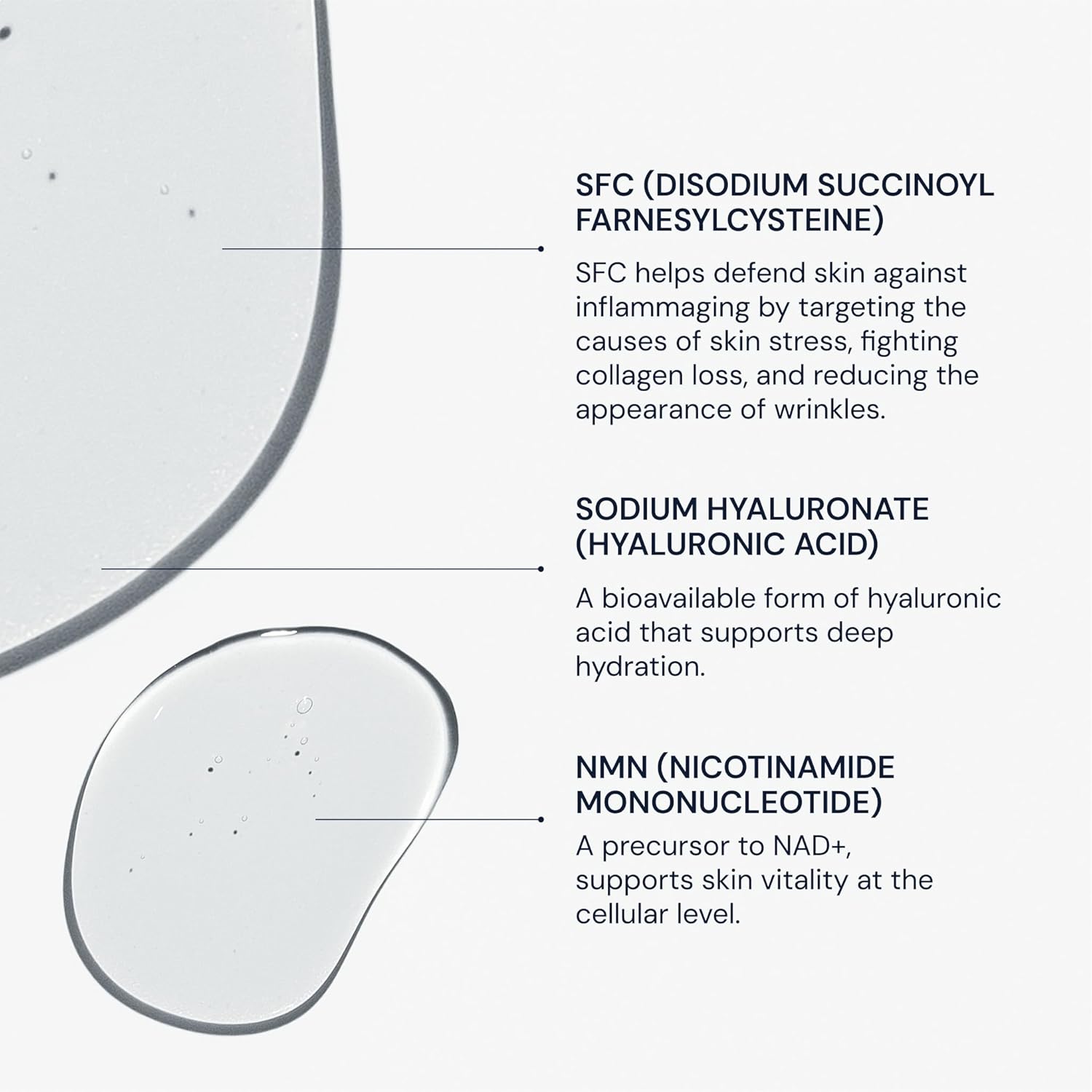 Next-Gen Actives: SFC and NMN target visible signs of aging, texture, reactiveness and redness.
