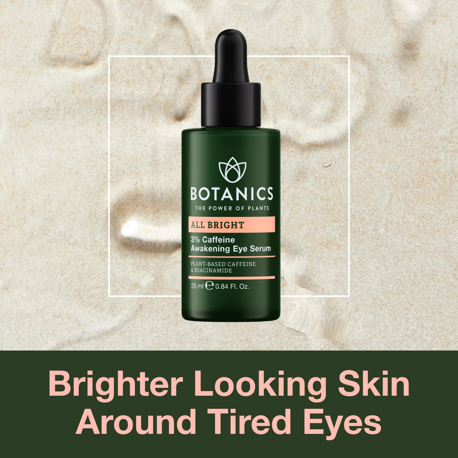 Botanics All Bright Caffeine Eye Serum - 3% Caffeine Awakening Under Eye Serum for Dark Circles and Puffiness - Refresh & Brighten Tired Eyes - Vegan & Cruelty Free (0.84 Fl Oz)
