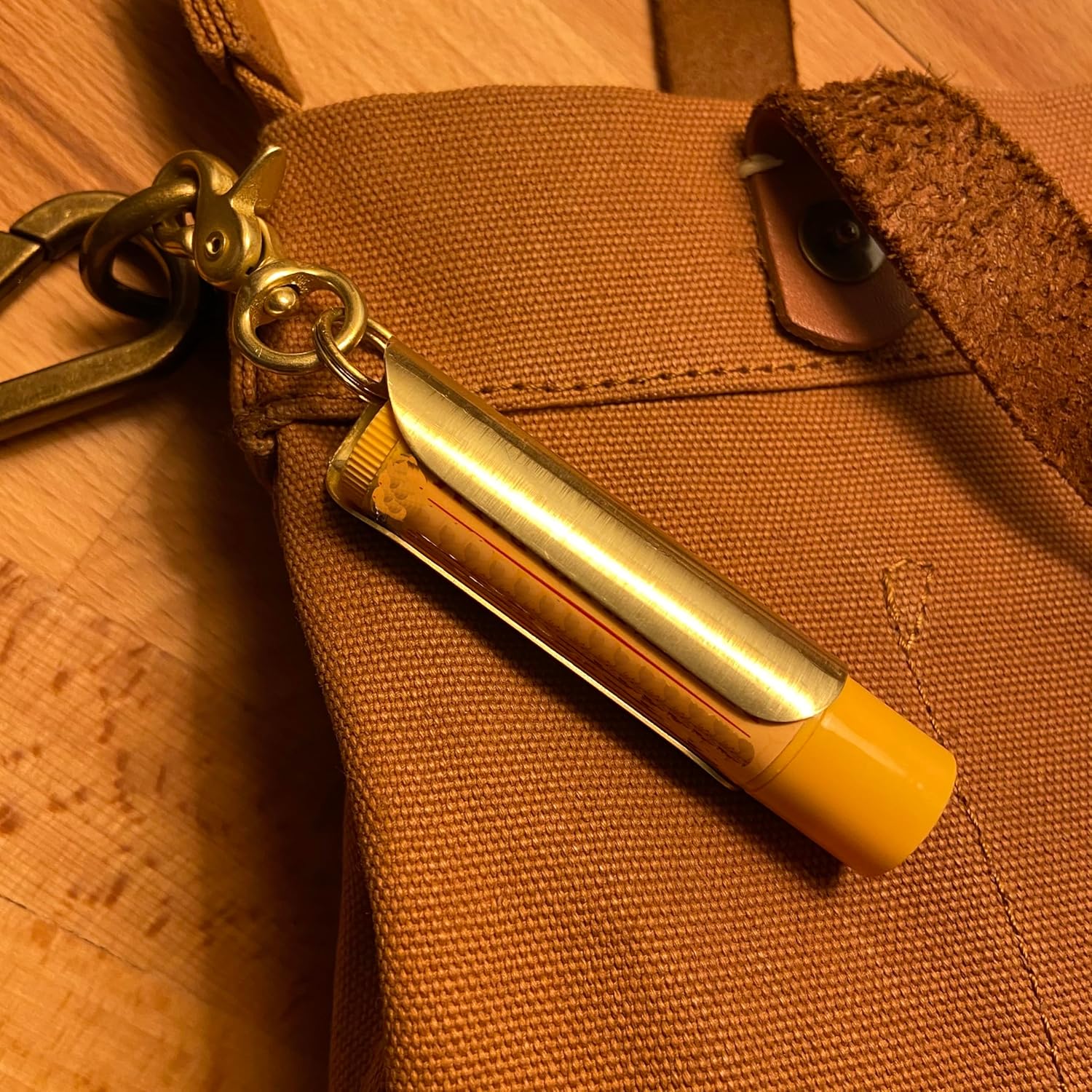 Brass Lip Balm Keychain Holder with Dial Protection