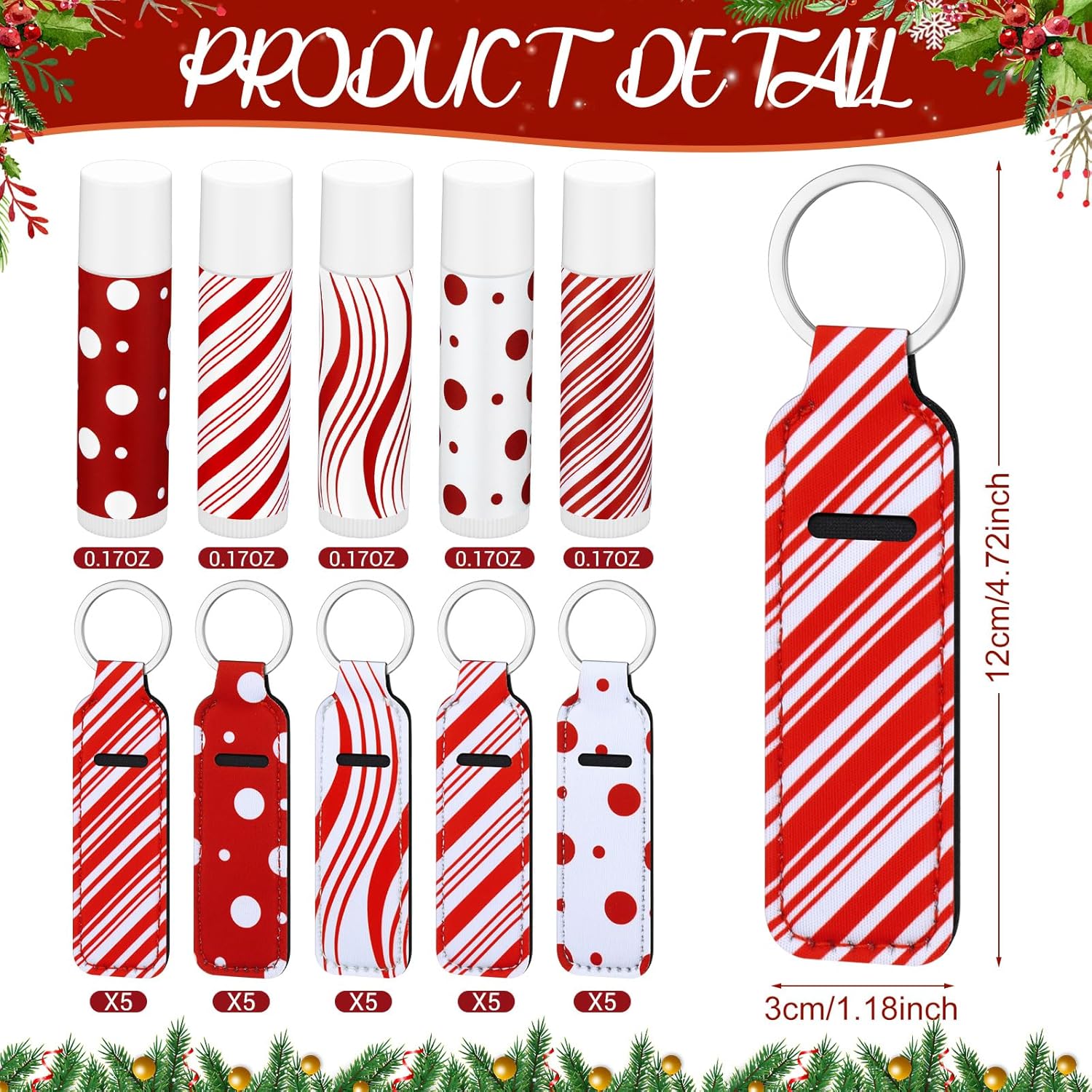 Classic Christmas Design: our lip balm is designed according to the inspiration of the Christmas candy; This Christmas goodie bags stuffers set has five different design patterns, You can use our mint Lip Balms and lipstick Holder Keychains together, attach it to your keys, bag, purse, functional and portable for daily using,This chic and small object is often loved by girls