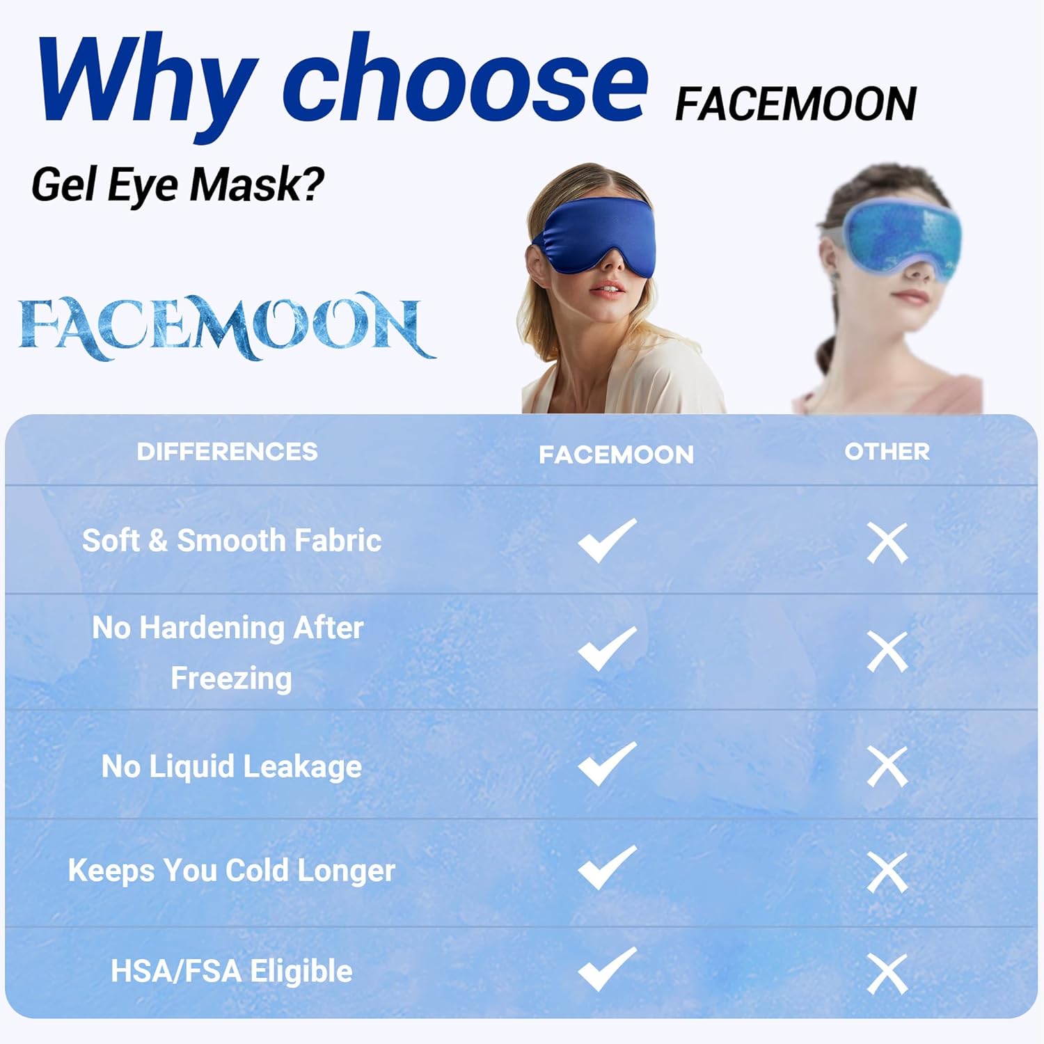 【Soft, Flexible, Long-lasting Cooling Relief】 Tired of eye masks that freeze or leak after use? FACEMOON innovative ice eye mask stays soft and flexible even after hours in the fridge, ensuring a comfortable fit with every use. It stays cooler longer and the material is durable and leak-proof, making it ideal for relieving your eye pain. Feel the comfort, experience the relief - your eyes deserve it. Ideal Spa Gifts for Women
