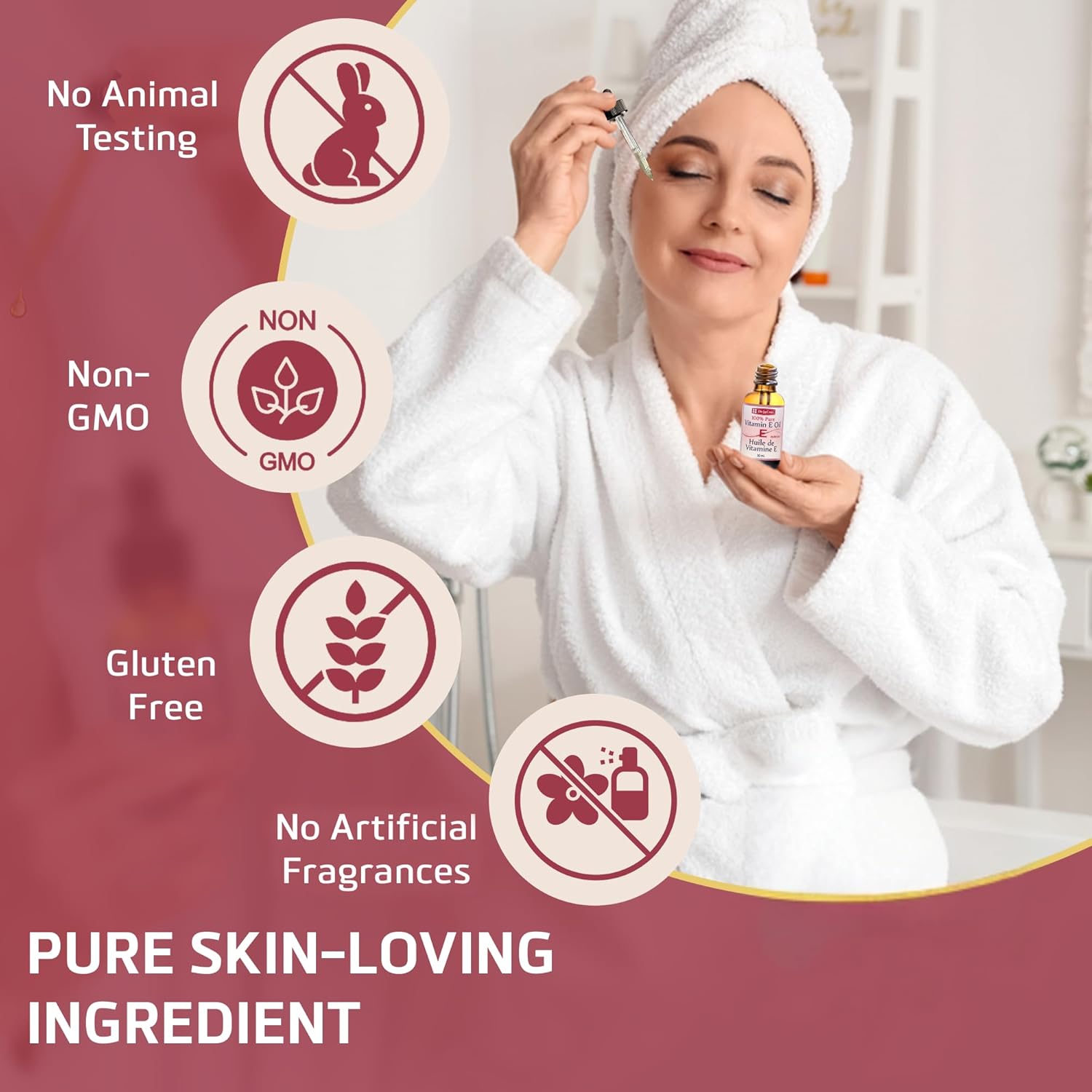 Never tested on animals (We love them!) This effective Vitamin E Oil does not contain artificial fragrances nor colors. Non- GMO, Gluten Free and Vegan. Made in USA.