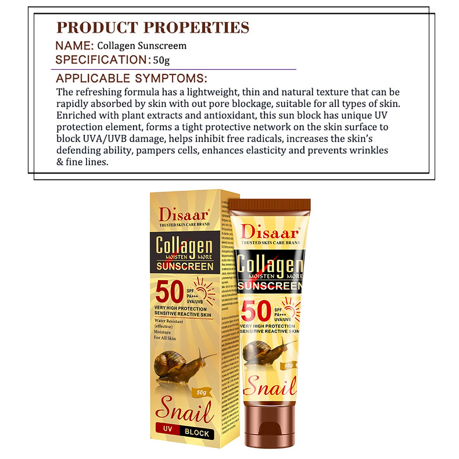 Comment on "DISAAR BEAUTY Collagen Snail Extract Sunscreen 50 SPF PA+++ UVA/UVB Hight Protection Sensetive Skin Water Resistant Moisture 50g / 1.76oz(1.76 Ounce (Pack of 1))"