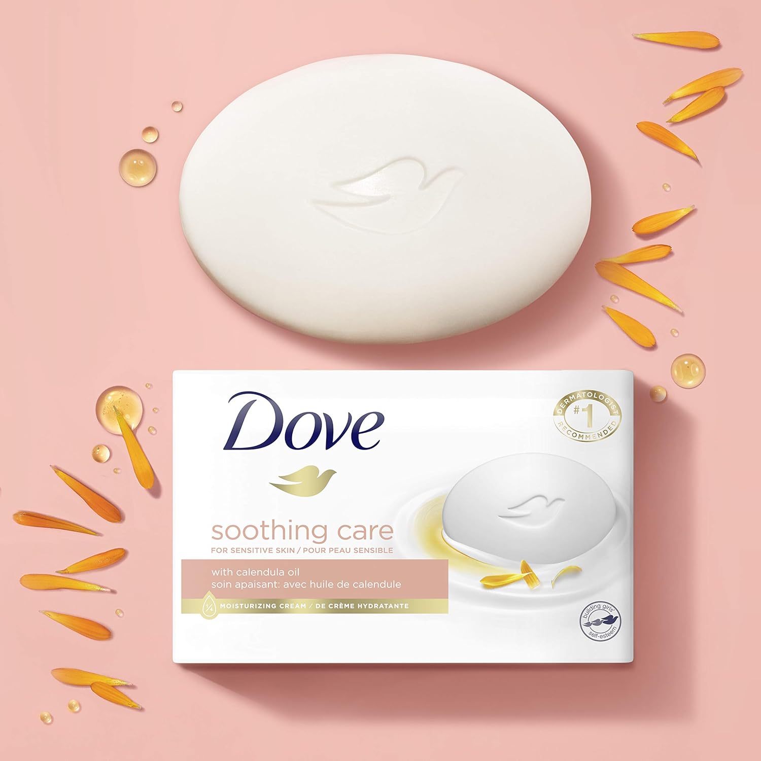 Dove Soothing Care Moisturizing Beauty Bar For Sensitive Skin with Calendula Oil Effectively Washes Away Bacteria, Hydrating and Replenishing Skin Care 3.75 oz 6 Bars