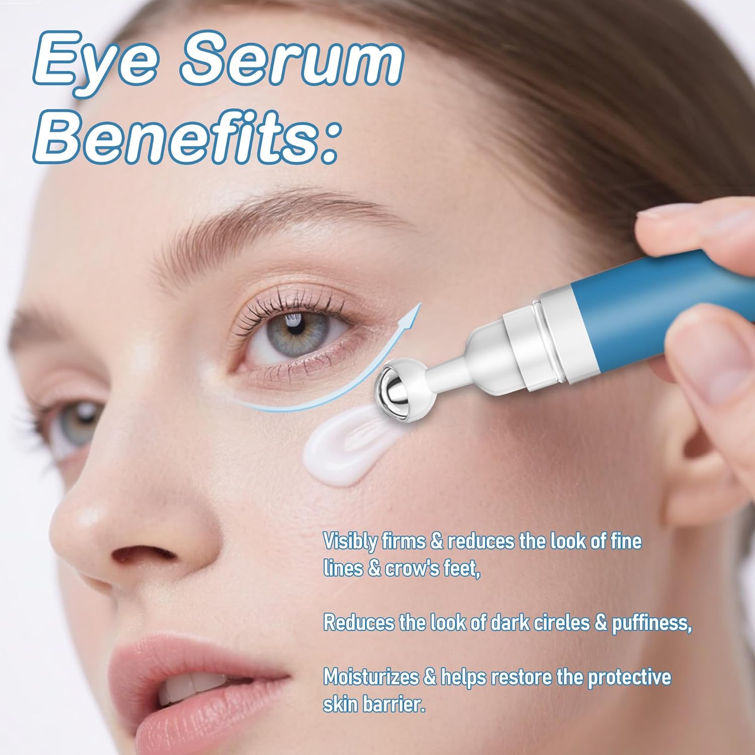 Eye Serum with 5% Caffeine for Dark Circles Puffiness Puffy Bags & Wrinkles Fine Lines - Under Eye Cream Anti Aging with 360° Massage Roller Ball,0.5 fl. oz(1PCS)