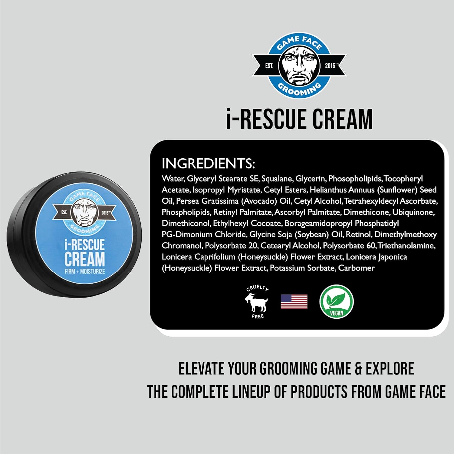 EYES ON THE PRIZE - Our targeted solution meticulously formulated to address a spectrum of eye concerns including reducing the appearance of bags, alleviate puffiness, diminish dark circles, and smooth away wrinkles around the eyes. Elevate your skincare routine with this specialized formulation designed to combat signs of aging and fatigue. The Game Face i-Rescue Cream is your ally in achieving a revitalized, brighter, and more youthful look around the eyes!