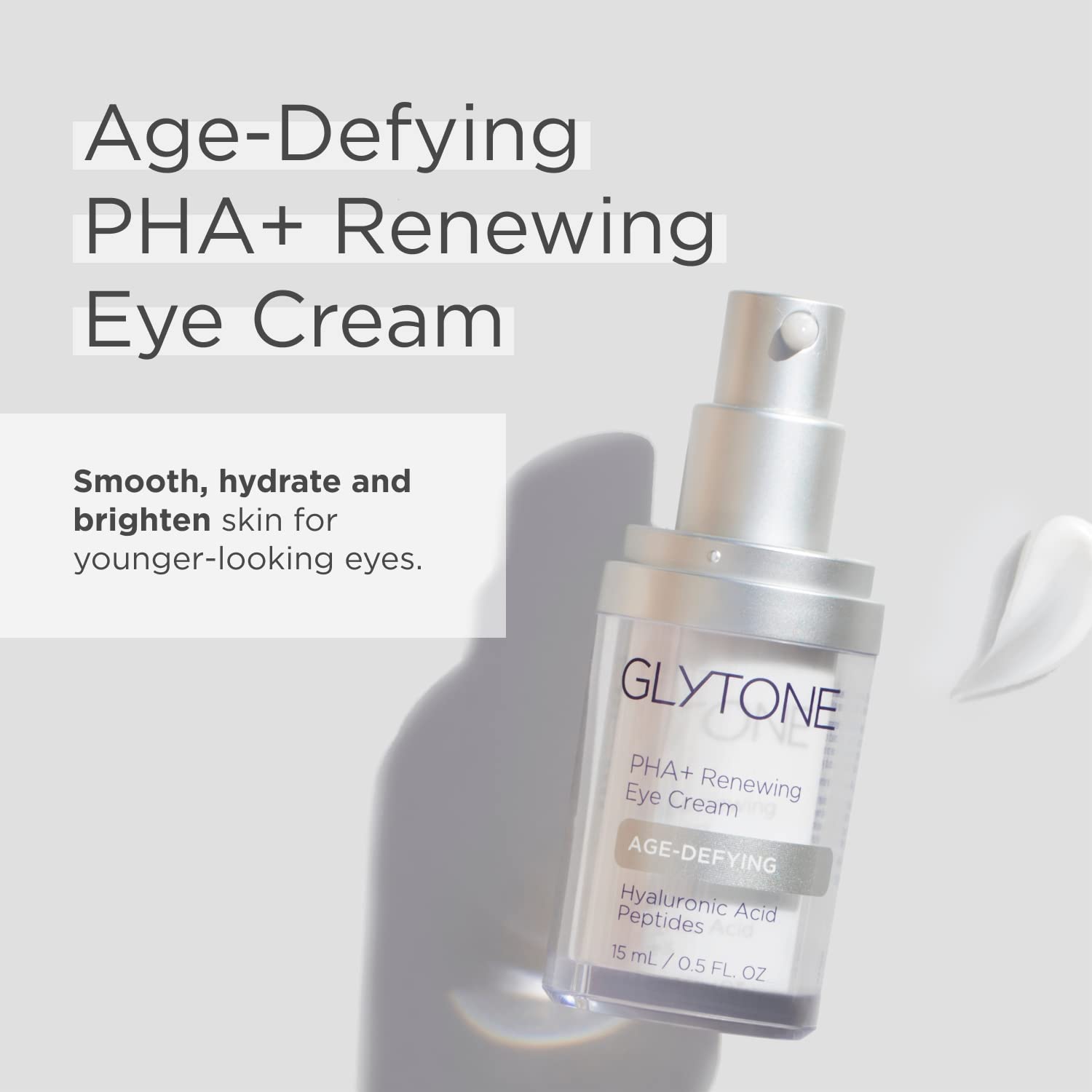 Glytone Age-Defying PHA+ Renewing Eye Cream for Wrinkles| Anti aging Under Eye Cream with Hyaluronic Acid Peptides| Targets Puffiness, Bags, Wrinkles & Dark Circles| Brightening Moisturizer| 0.5 Fl oz