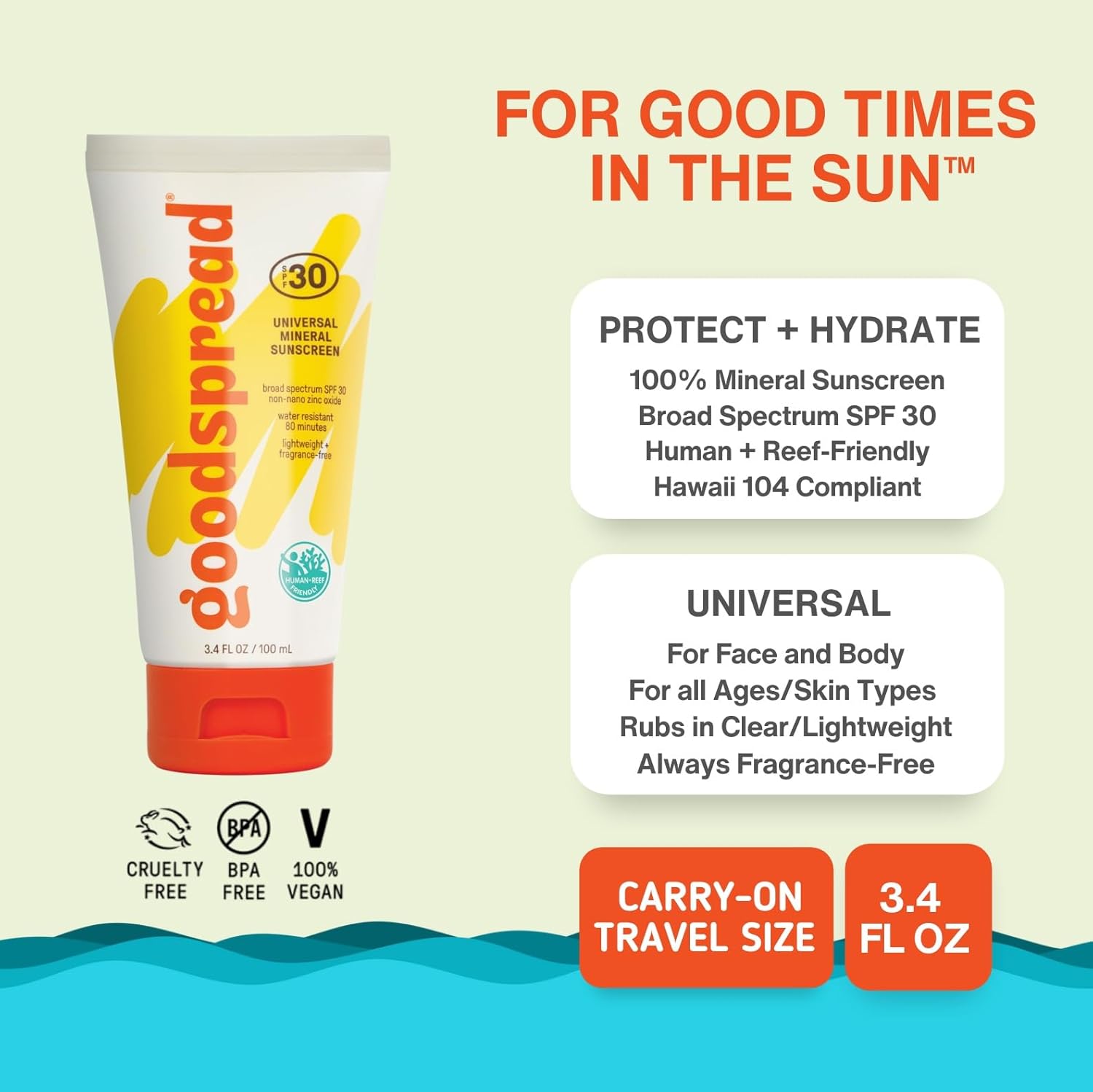 REEF-SAFE – Goodspread is free from chemicals including oxybenzone, octinoxate, ensuring a coral reef-safe formula that’s safe for marine life. Approved for Hawaii, Mexico, US Virgin Islands and wherever chemical sunscreens are banned.