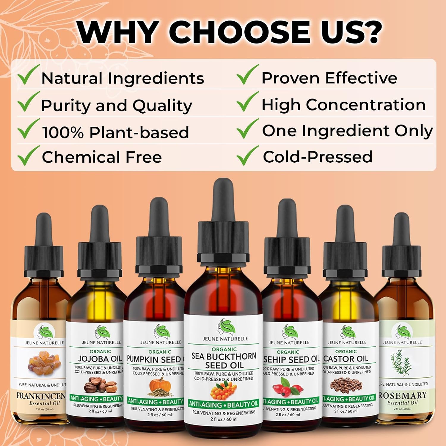 Jeune Naturelle Sea Buckthorn Oil Organic, From Fruit & Seeds, 100% Pure RAW Virgin Cold-Pressed Undiluted Unrefined, Fast Absorbing, Travel Size, Non-Comedogenic(2 Fl Oz (Pack of 1))