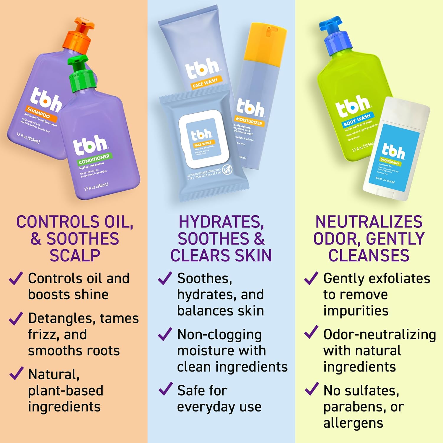 Complete 7-in-1 Hygiene Kit for Tweens: This all-in-one set includes everything your tween needs for a healthy personal care routine—Shampoo, Conditioner, Body Wash, Face Wash, Face Wipes, Face Moisturizer, and Deodorant.