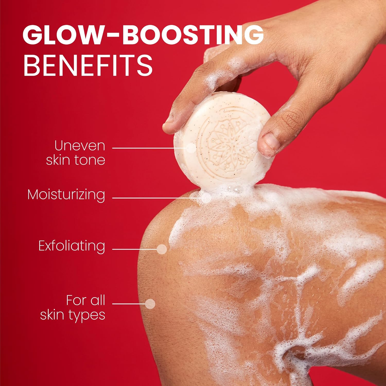 • NO HARSH INGREDIENTS - Our exfoliating soap is made with natural ingredients, contains no parabens or SLS, and is certified vegan and PETA-compliant. Each box contains 2 x 2.82oz brightening soap bars.