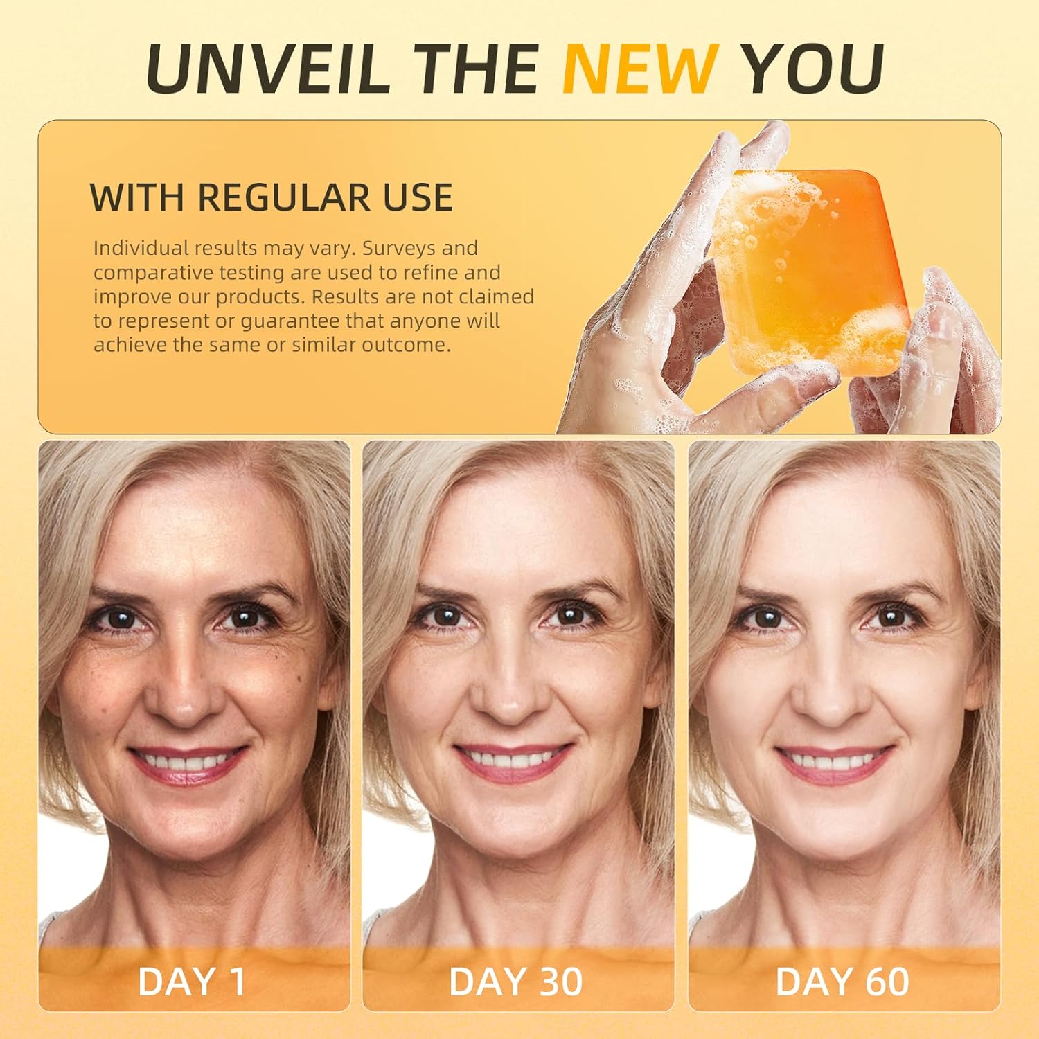 Natural Gentle Formula: Turmeric Soap Bar contains vitamin E, Retinol and Collagen, which can help your skin stay hydrated from the inside out, dark spot remover, keep skin elastic and young.