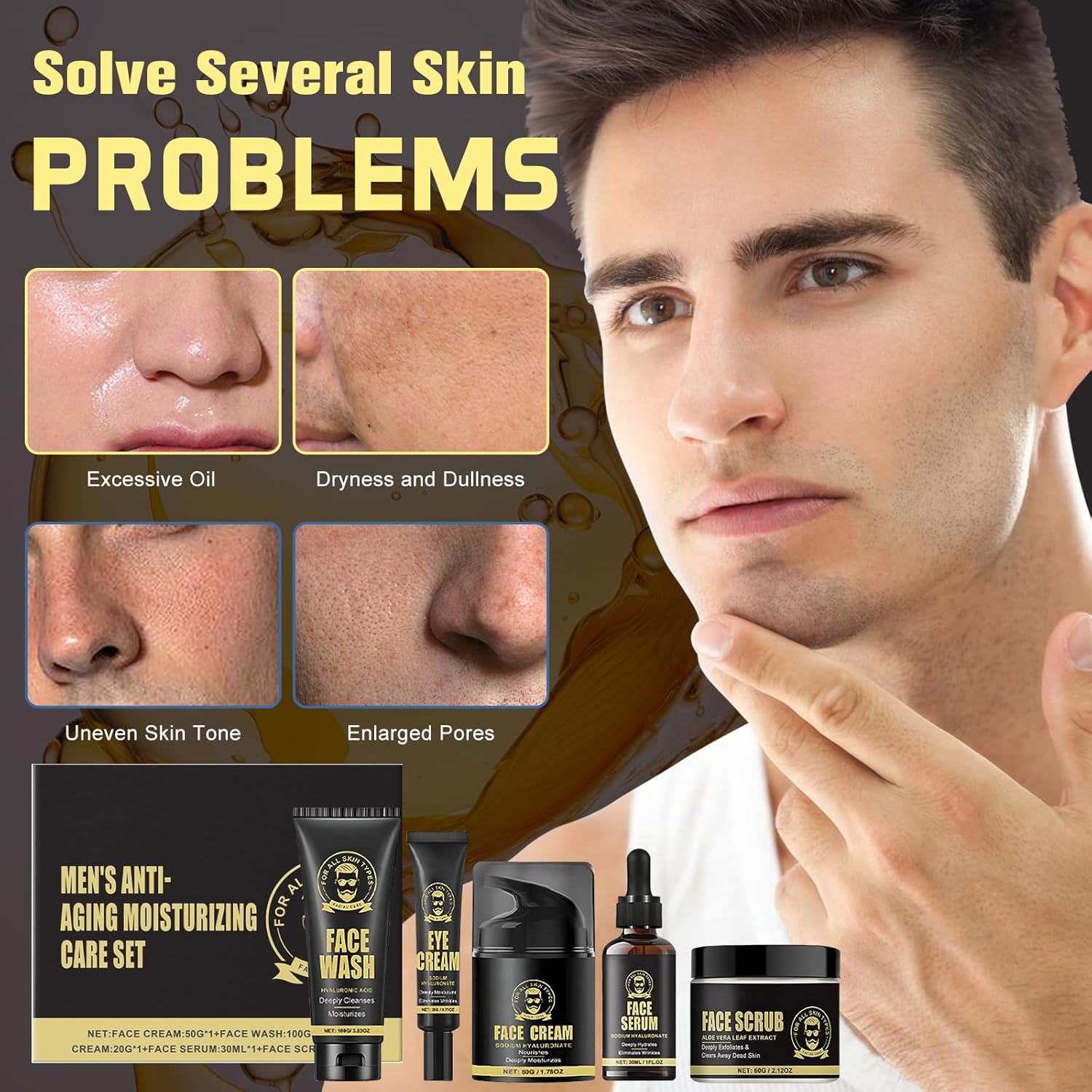 Men's Skincare Set: This 5 pieces men's skincare set contains a facial cleanser, facial scrub, serum, eye cream, and face cream to deeply cleanse the skin and reduces excess oil, replenishes moisture for dry skin.
