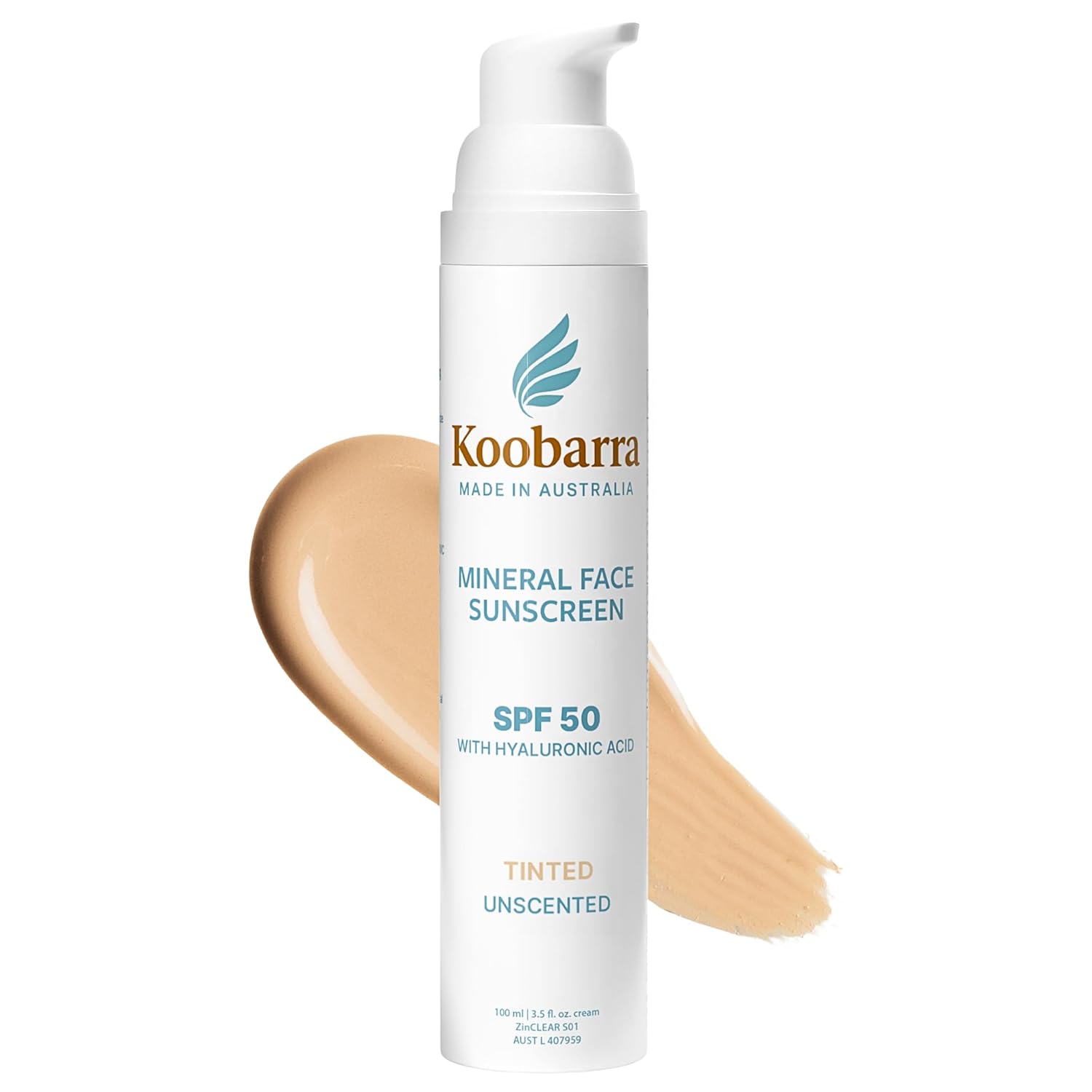 Mineral Face Sunscreen SPF 50, Tinted, Aussie Zinc Oxide Sunblock with Hyaluronic Acid, Unscented, Reef Safe, Australian Made, 3.5 fl oz