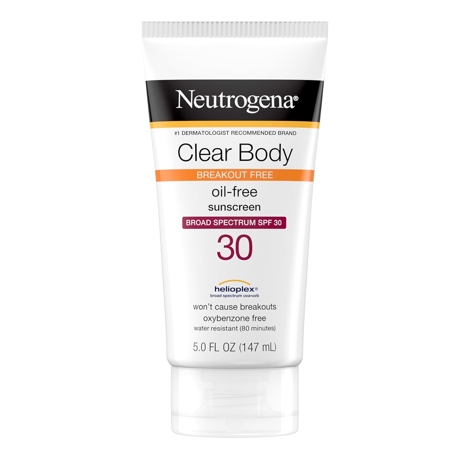 Neutrogena Clear Body Breakout-Free Liquid Sunscreen Lotion for Acne-Prone Skin, Oil-Free Sunscreen, Broad Spectrum SPF 30, Oxybenzone-Free, Fragrance-Free & Non-Comedogenic, 5 fl. oz