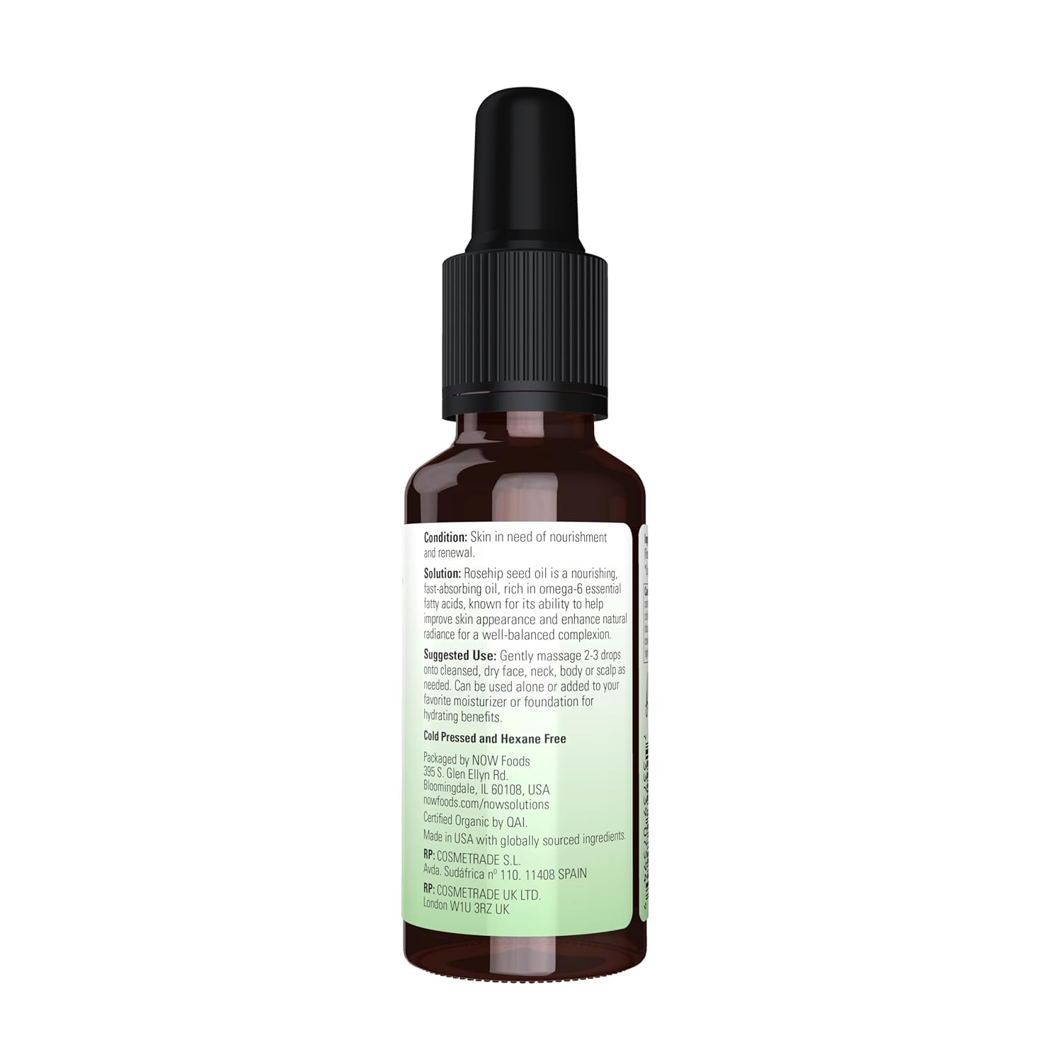 NOW Solutions, Organic Rose Hip Seed Oil, Certified Organic and 100% Pure, For Facial Care, Expeller Pressed, Vegan, Child Resistant Euro Dropper, 1-Ounce(1 Fl Oz (Pack of 1))