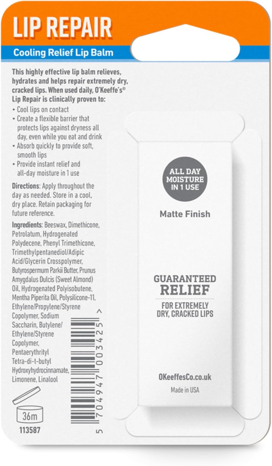 • O’keeffe’s lip repair is hardworking skincare that provides instant relief to extremely dry, cracked lips