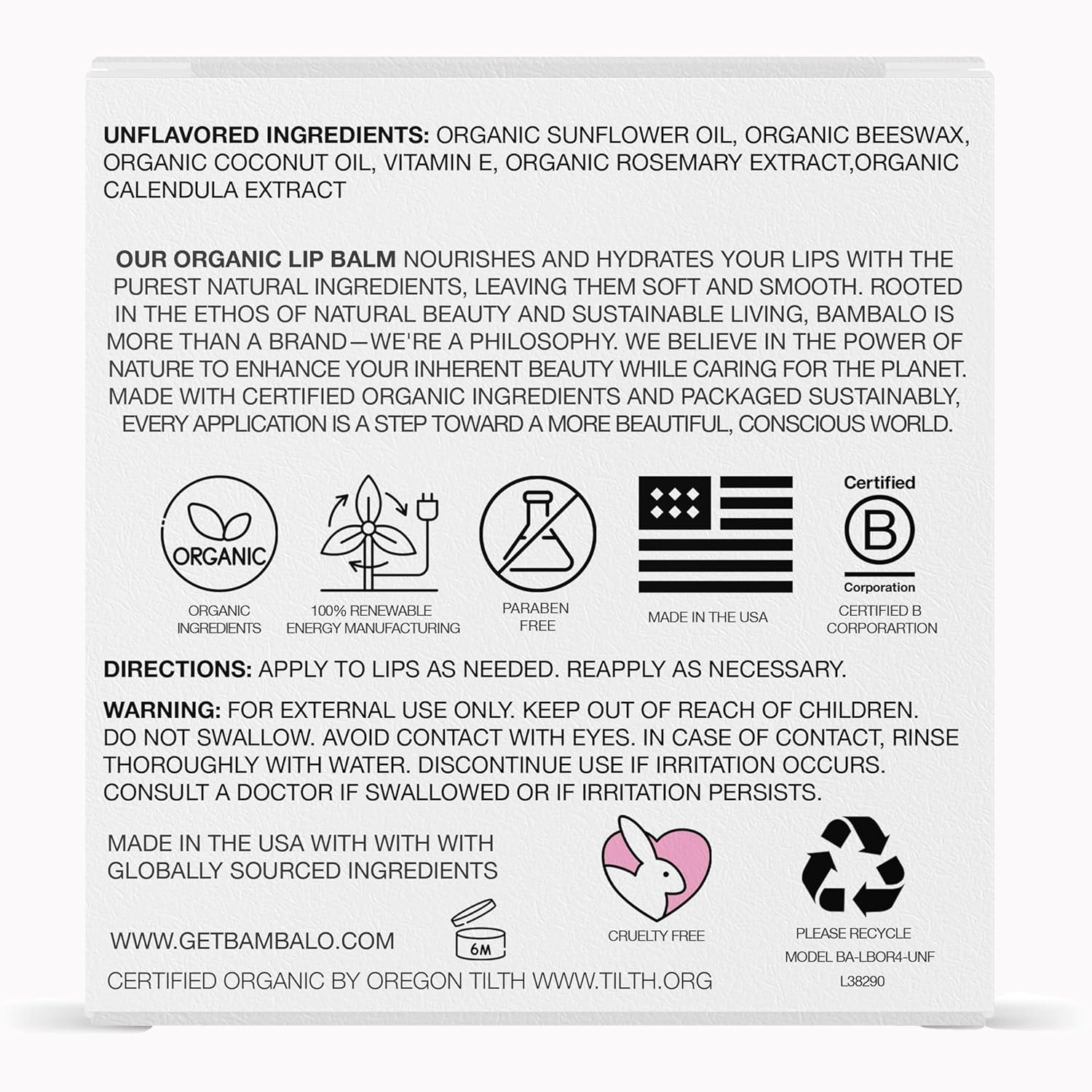 B Corporation Certified & Eco-Conscious – As a B Corporation certified company, Bambalo is committed to ethical practices and environmental sustainability. These cruelty-free lip balms are made in the USA using 100% renewable energy and packaged with 30% less plastic for a greener footprint.
