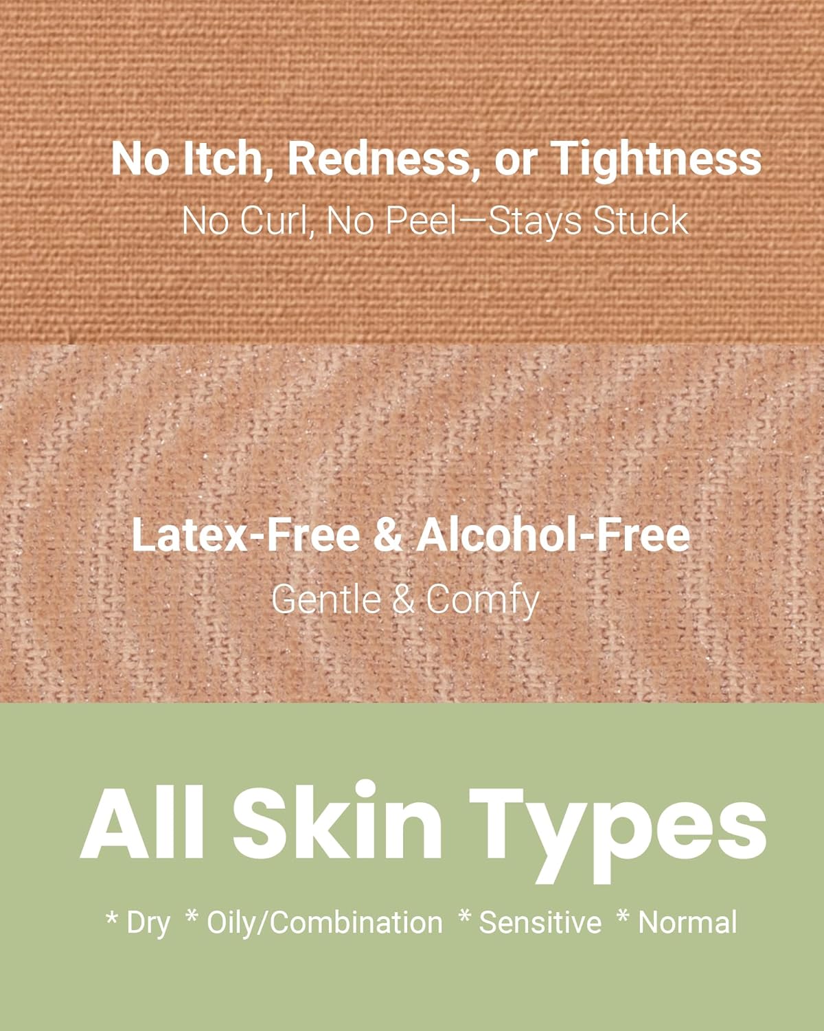 [Hypoallergenic & Breathable]:Pure cotton,spandex,and medical grade glue ensure irritation free wear — latex free,alcohol free,and breathable.Gentle enough for sensitive skin,prevents pimples or redness.Apply after skincare (serums,face oil or face moisturiser) for seamless face tape integration.