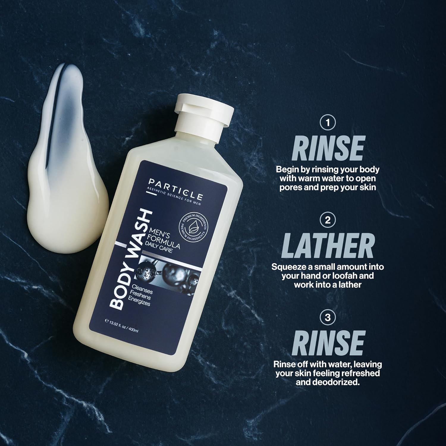 Dead Sea Mineral Infusion: Particle Men’s Body Wash is enriched with Dead Sea minerals including calcium, potassium, magnesium, and zinc. This daily shower essential cleanses thoroughly while leaving skin feeling refreshed, smooth, and conditioned. A unique men’s body wash formula that supports effective cleansing without heaviness.