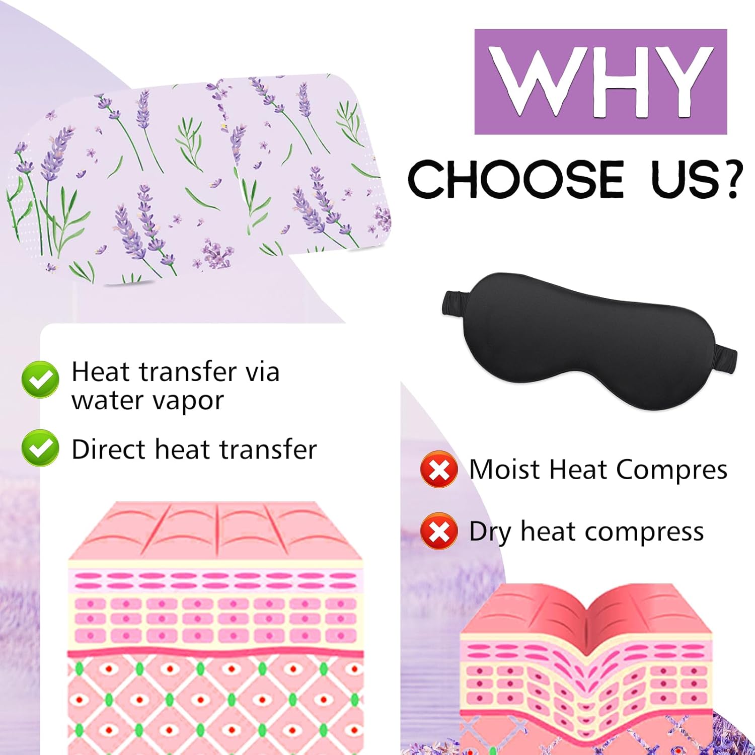 【Lavender Scent Steam Eye Masks 】-Self-heating steam eye mask is great for relieving your dry eyes and tired eyes, improve your sleep quality, reduce dry puffy eyes, and dark circles. This heated eye mask will promote blood circulation, release fine moist steam, relax your eyes around.