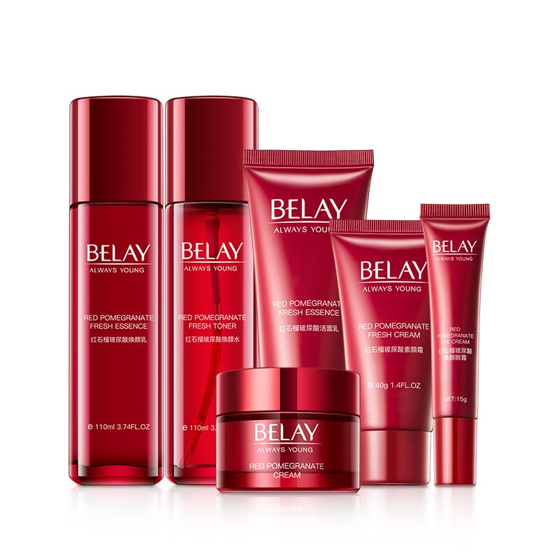 Suitable for all skin types, and the skin care kit contains pomergranate, fruit extract and various nutrients, which can moiturizes facial skin, nourishes skin base and improves roughness and dryness.