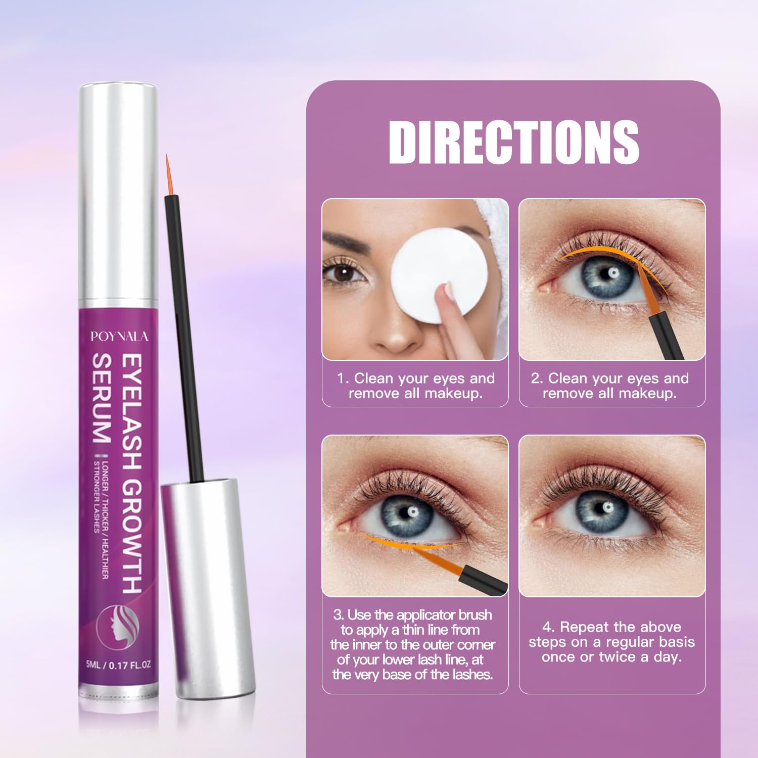 Gentle Formulation: This lash growth serum, made with natural ingredients, is safe and hypoallergenic, ideal for sensitive eyes. Lash enhancing serum is safe to use on delicate tissues along the lash line.