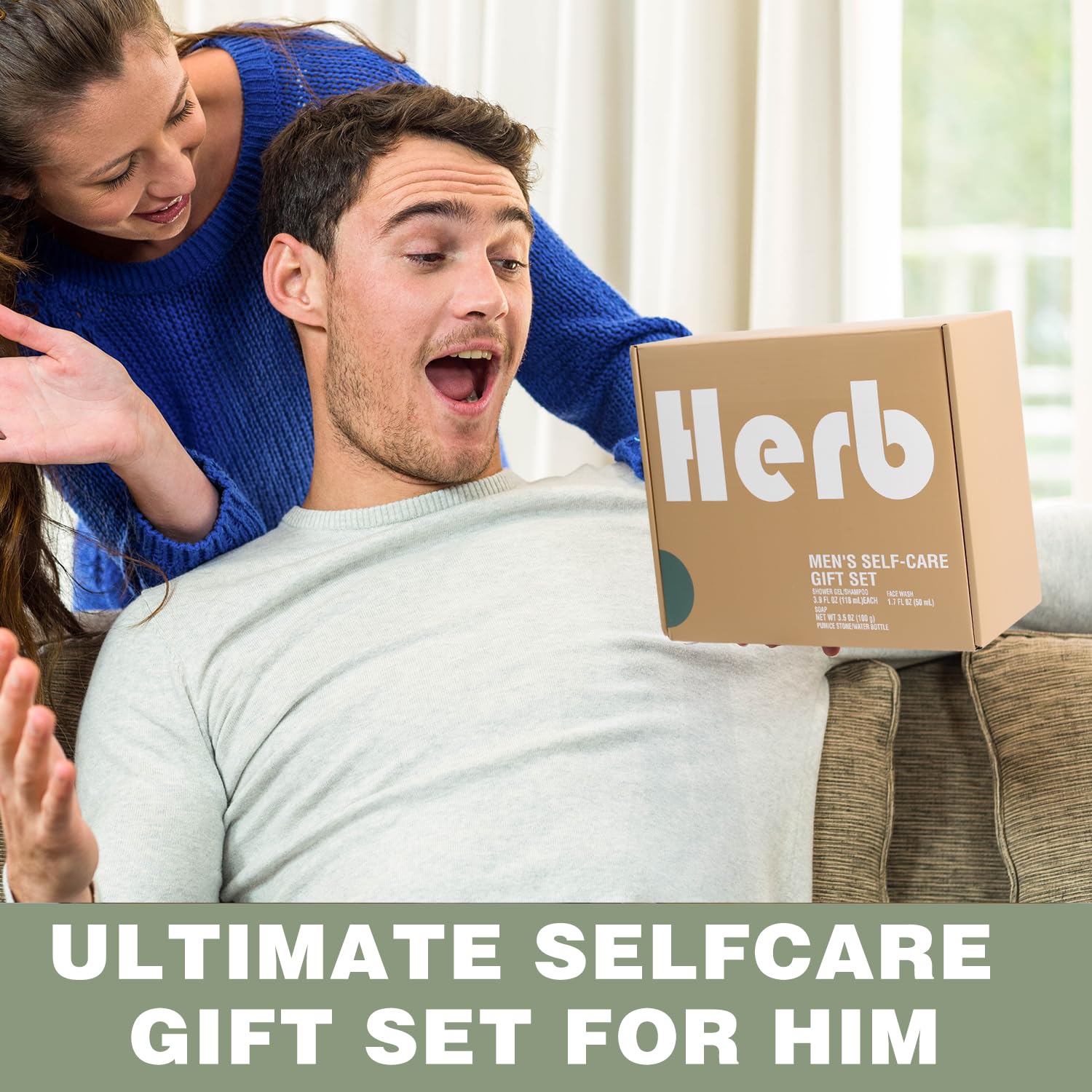 Self Care Gift Set for Men, Bath and Body Spa Gift Baskets for Men, Body & Earth Mens Cedar and Santal scented Bath Set, Father's Day Gifts(Herb)