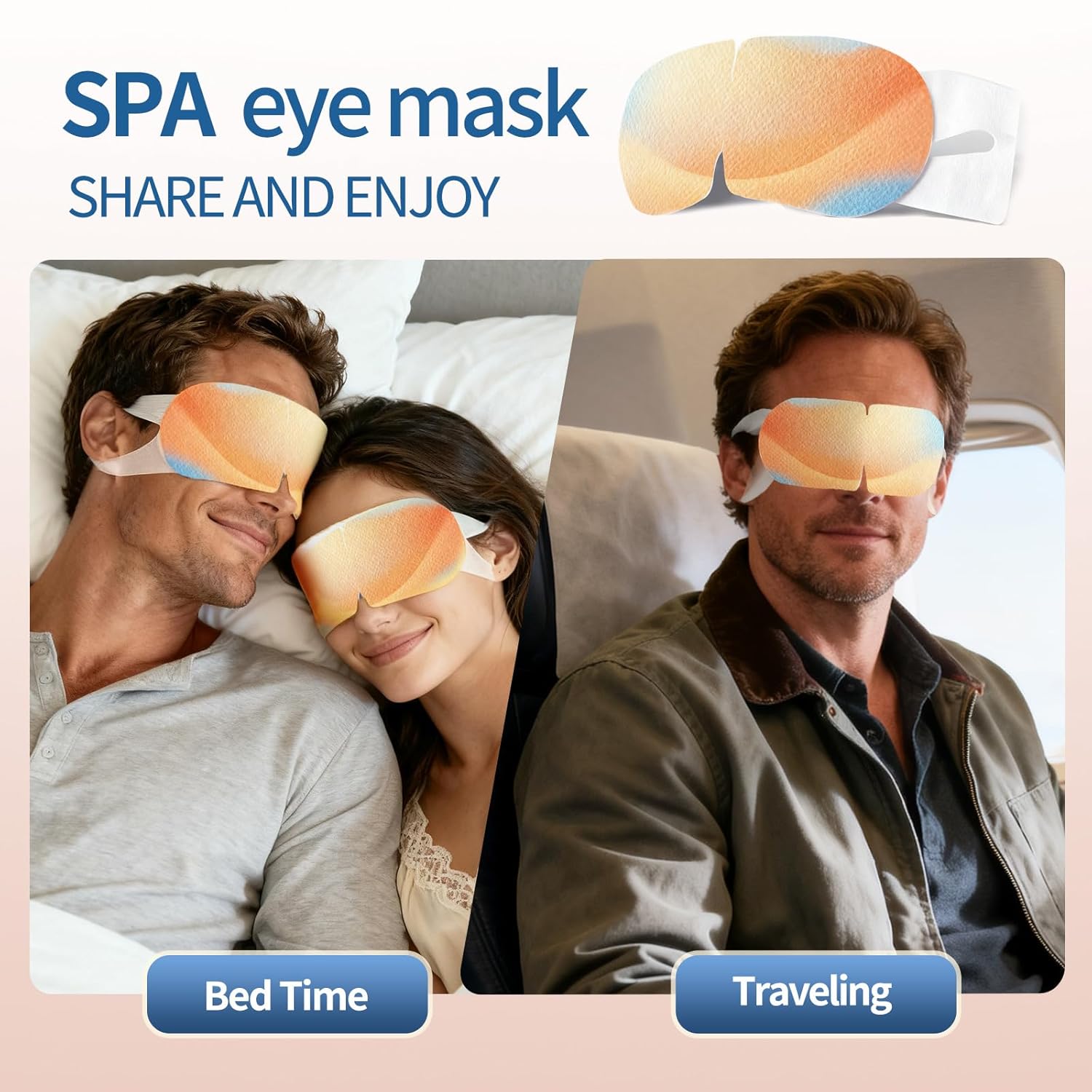 Anytime, Anywhere: Whether you need a quick nap, a bedtime eye spa, or relief during travel, our steam eye masks are lightweight, portable, and easy to use anywhere.Our disposable heated mask delivers soothing warmth and moist heat to help you relax after long hours of screen time or work—perfect for sleep, travel, or quick breaks.