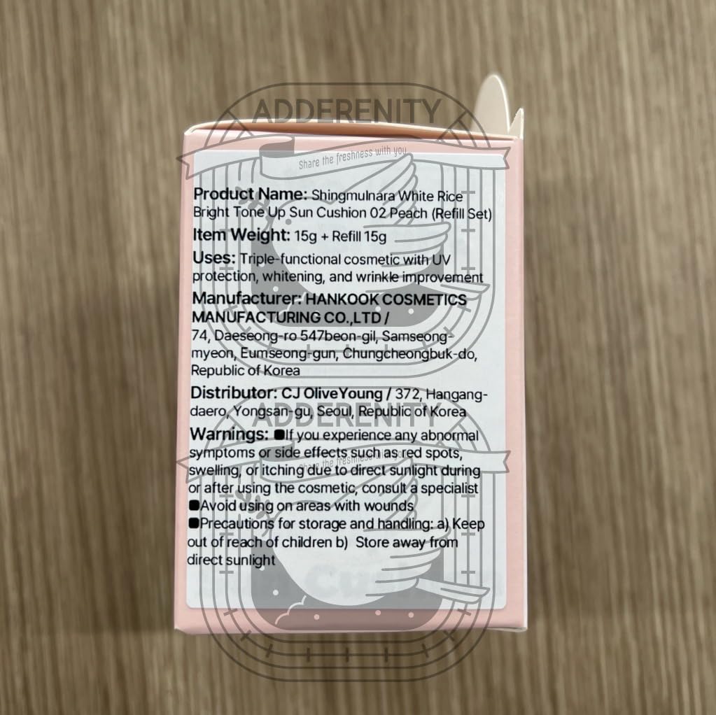 Shingmulnara Oxygen Water Tone Up Sun Cushion SPF50+ PA++++ (15g + 15g Refill) (#02 Peach) + Kitty Friends character sticker