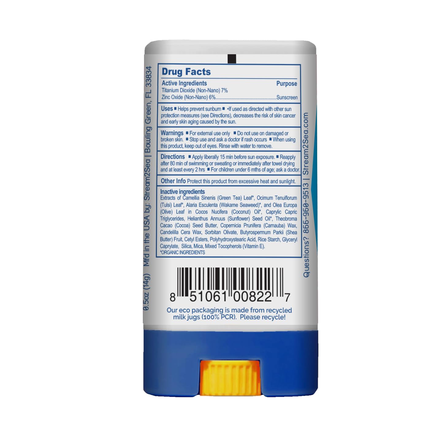 STREAM2SEA EcoStick SPF 35 Mineral Sunscreen Stick, Sweat Water Resistant Sunblock, USDA Approved Biodegradable Paraben Free Reef Safe Sunscreen Protection Against UVA UVB (EcoStick Tint) - 0.5 oz(EcoStick Sport)