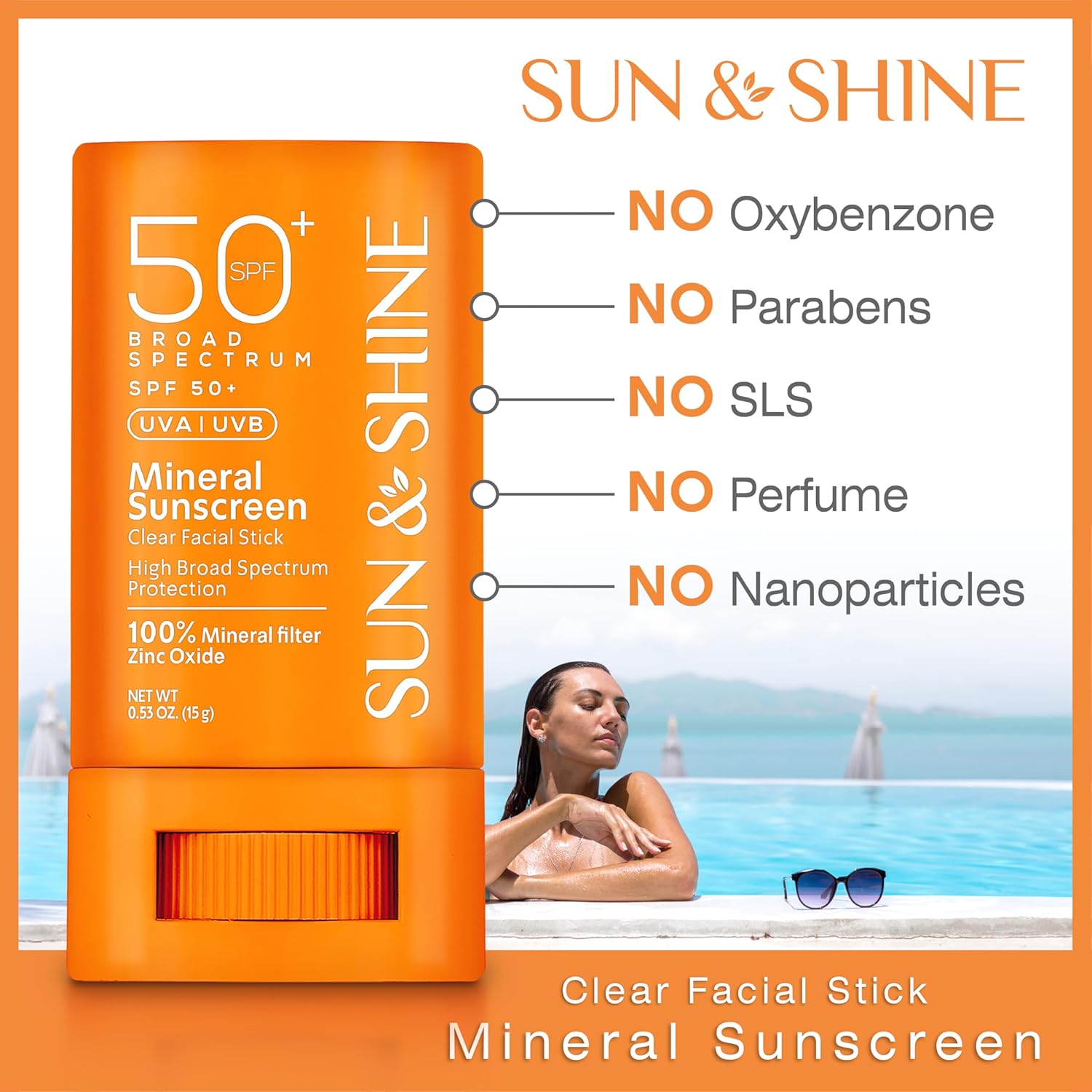 Sun & Shine clear Mineral zinc oxide STICK sunscreen SPF 50+ Sunscreen Face Stick | Vegan, Reef safe |sensitive skin Broad Spectrum Natural Sunscreen Fragrance free, Dermatologically tested