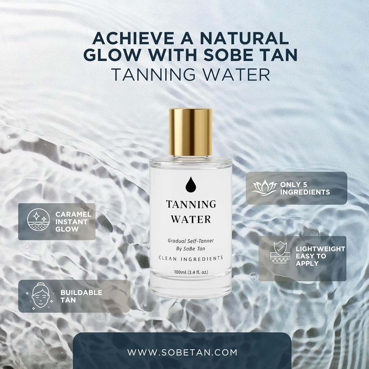 Tanning Water - Hydrating Self-Tanning Mist with Aloe Vera, 5 Natural Ingredients, Food-Grade Preservatives, Vegan, Cruelty-Free, Streak-Free Golden Sunless Tan, 3.4 fl oz (TSA-Approved)