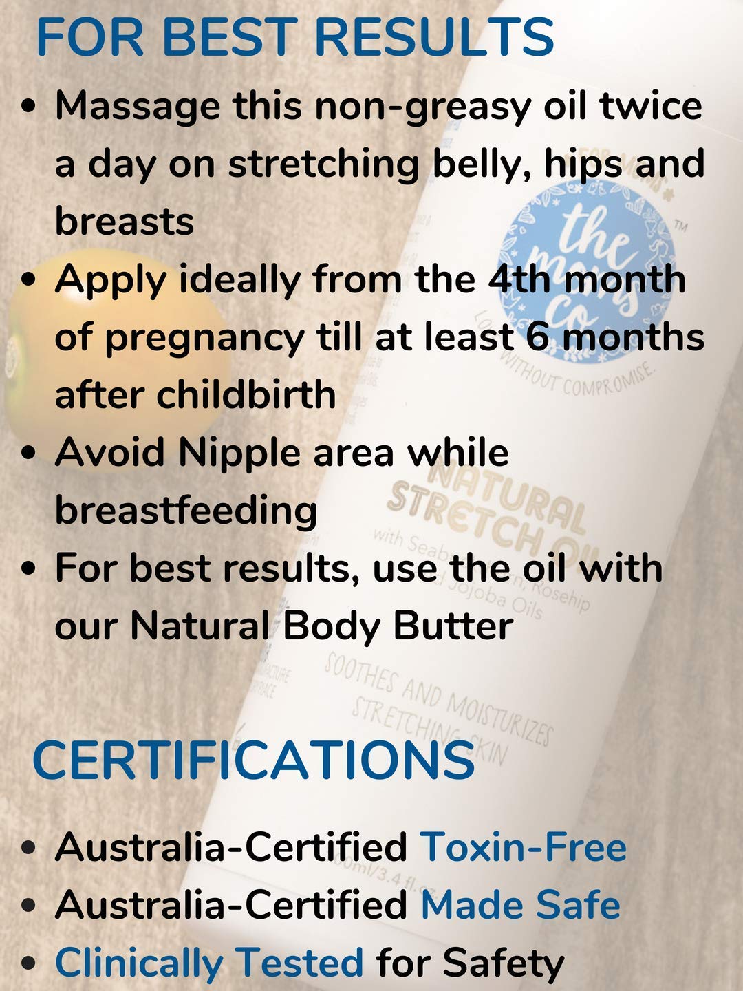 THE MOMS CO. NATURAL STRETCH BIO OIL FOR MOMS-TO-BE - This pregnant belly oil from our range of Pregnancy Safe Skin Care is ideal for moms-to-be to combat the dry, itchy, stretching skin that usually comes with pregnancy.