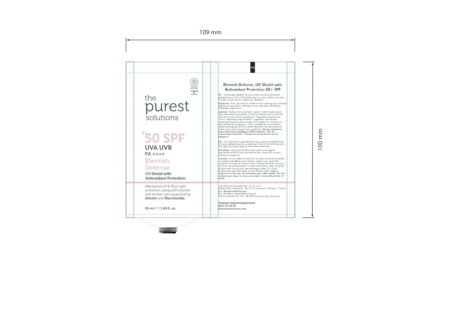 The Purest Solutions Blemish Defense (UV Shield with Antioxidant Protection SPF 50+) - 8h UVA Protection, Arbutin & Niacinamide for Skin Tone Harmonization and Moisturizers - Vegan (50 ml)