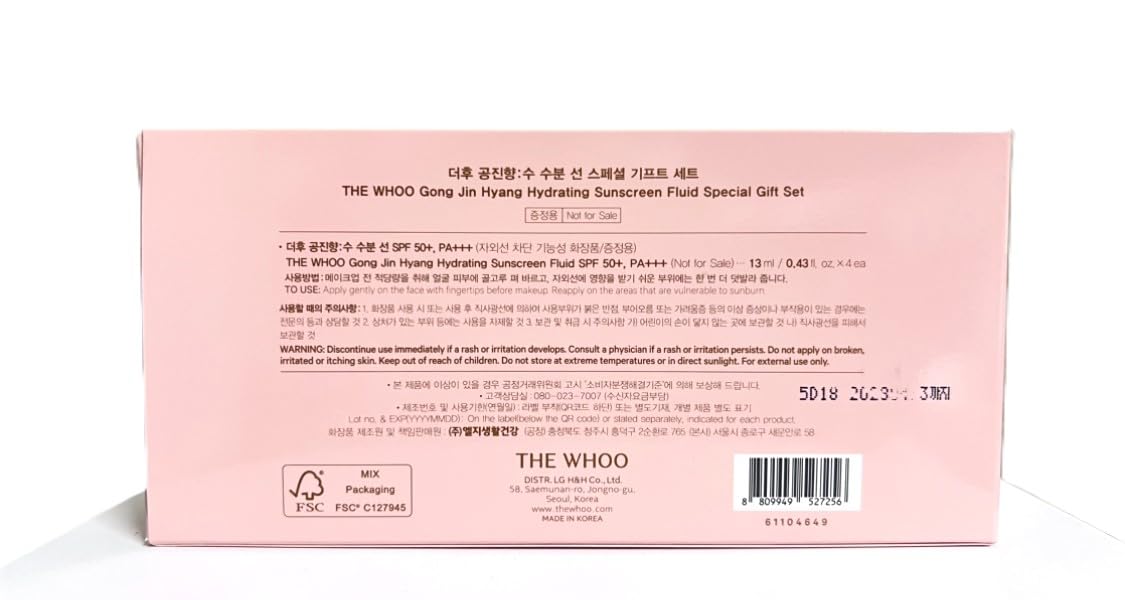 Comment on "THE WHOO Hydrating Sunscreen Fluid, UV Protective Lotion SPF 50+/PA++++ Special Set 60ml+ Travel Kit 4ea x 13ml. Cooling-Anti-Aging-Moisturizing formula. Made in Korea"