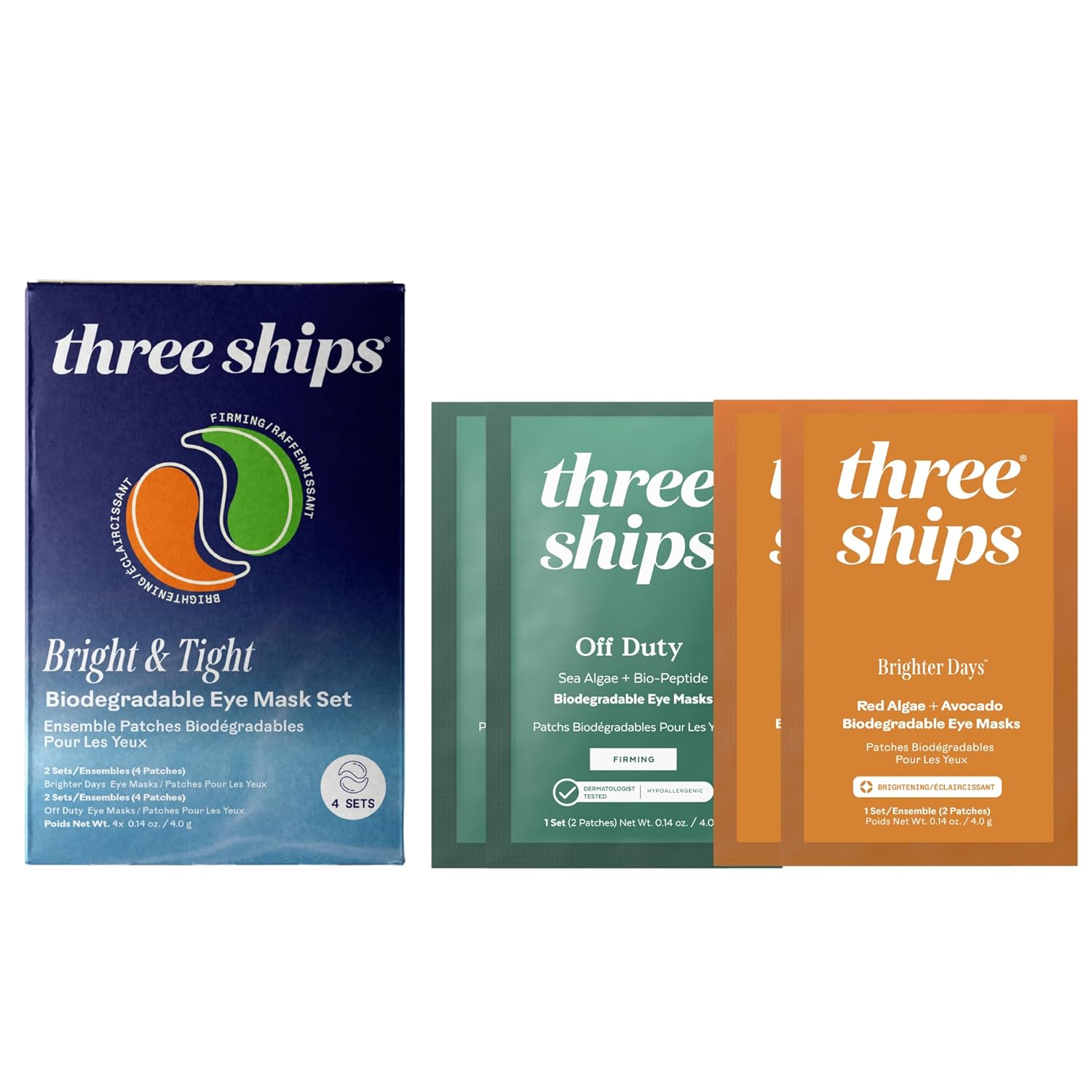 Three Ships - Bright & Tight Biodegradable Eye Mask Set | 4 Sets to Help Depuff and Firm Under Eyes