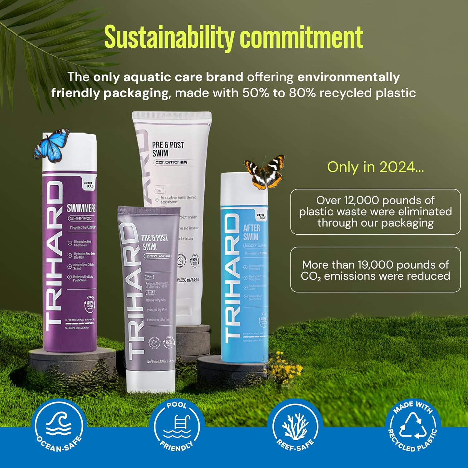 TRIHARD Chlorine Removal Body Wash, Protects and Hydrates Sensitive Skin from Pool and Ocean, Pool Essentials for Post Swim Chlorine Skin Protection(8.45 Fl Oz (Pack of 2))