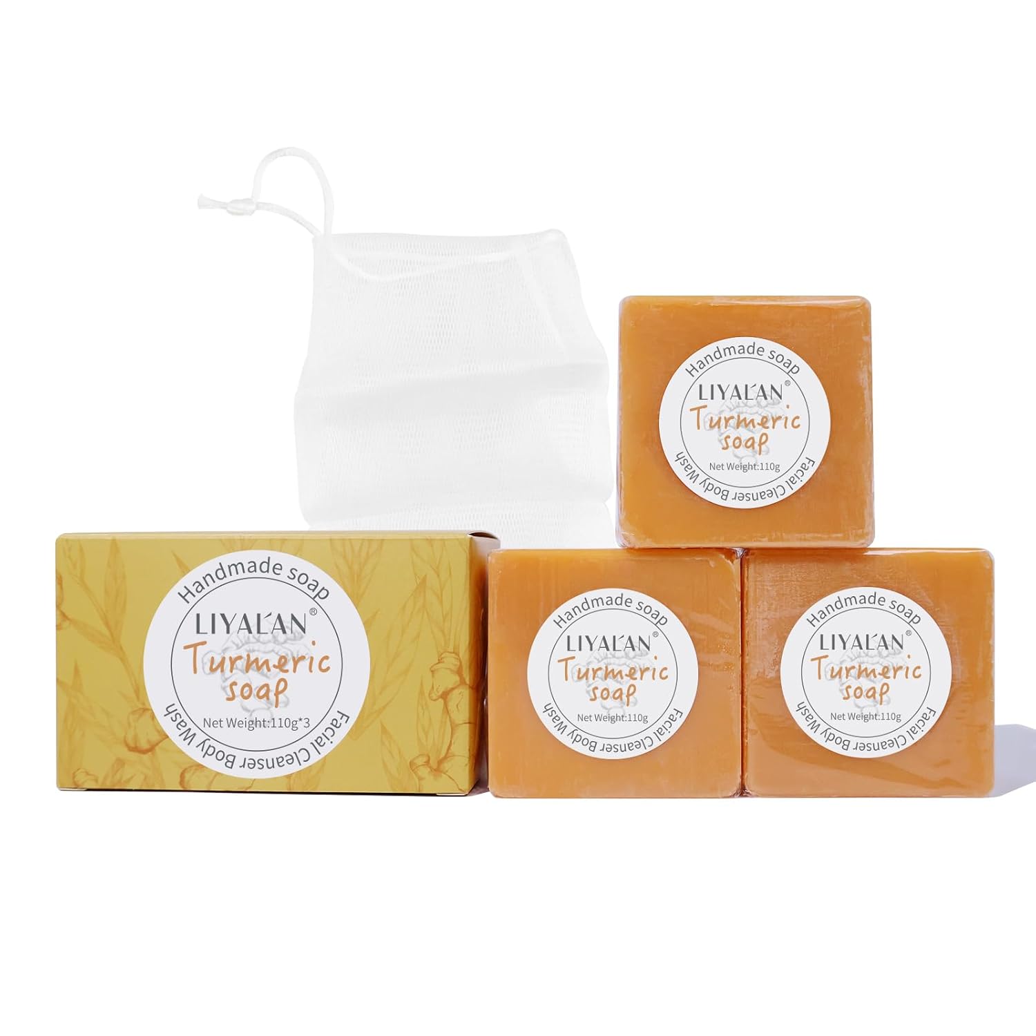 Deep Cleansing: Liyalan Turmeric bar soap can clean pores and impurities, remove excessive oil and skin horn and dirt, soothe acne-prone skin.