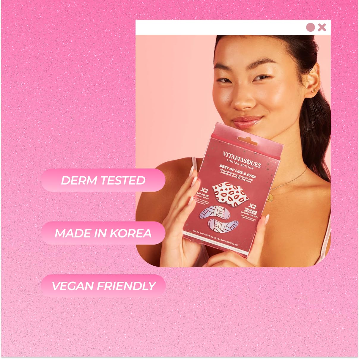 Vitamasques Under Eye Patches & Lip Mask Sheets, Best of Eyes & Lips Set 2 Packs - Eye Patches for Puffy Eyes - Under Eye Masks for Dark Circles and Puffiness - 2 x 4 Packs - 8 Pads(Lips and Eye Set)