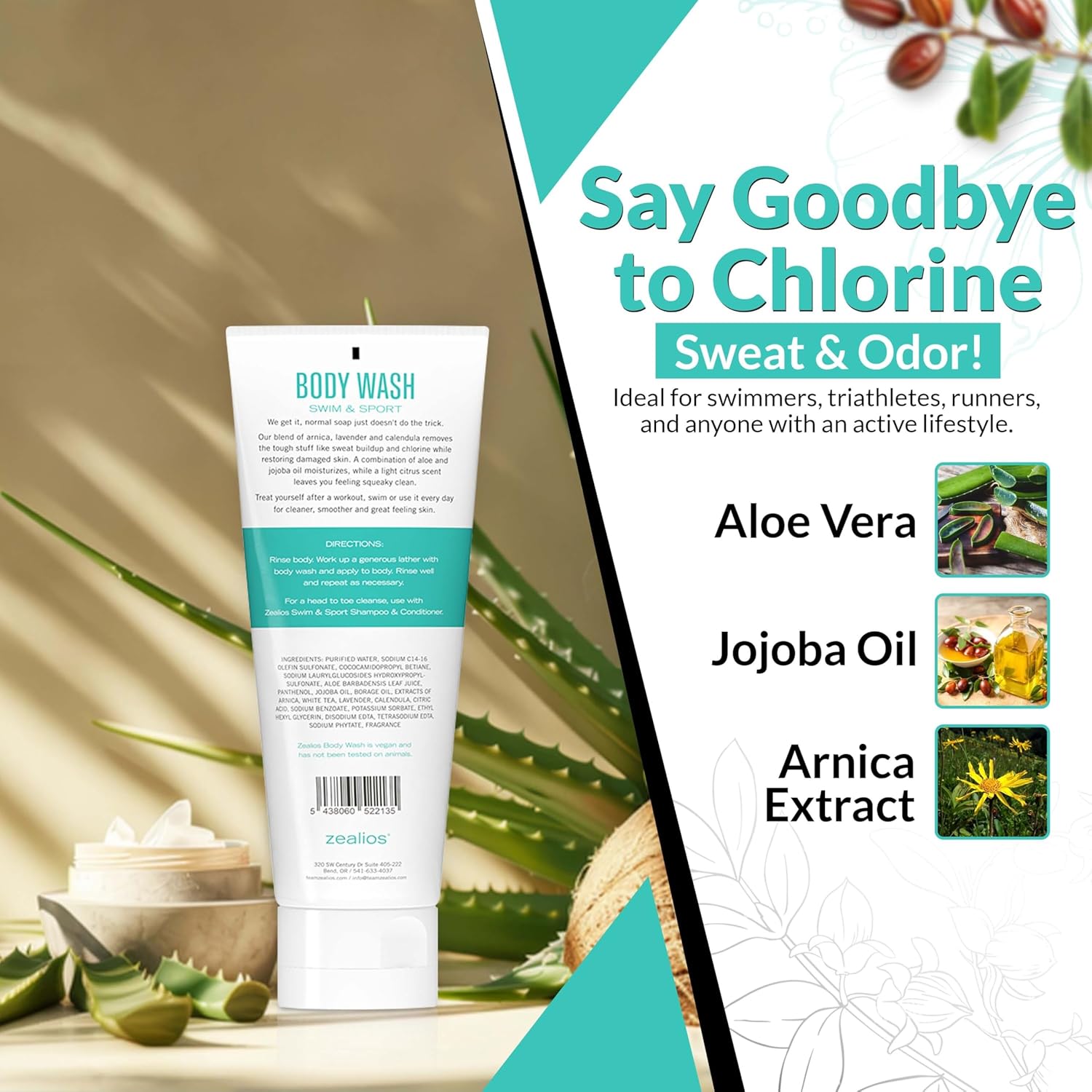 Powerful Cleansing for Active Lifestyles: Zealios Swim & Sport Body Wash is specially designed for swimmers and athletes. It effectively removes chlorine, sweat, and salt buildup while keeping skin fresh and clean.