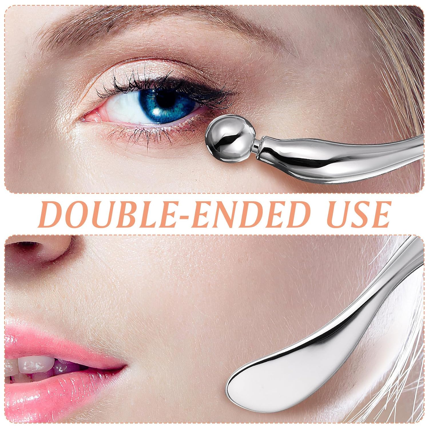 Multi-functional Tool: the dual-ended design features a spatula for scooping skincare products like creams and masks, and a massage tool to gently alleviate fatigue around the eyes and improve circulation